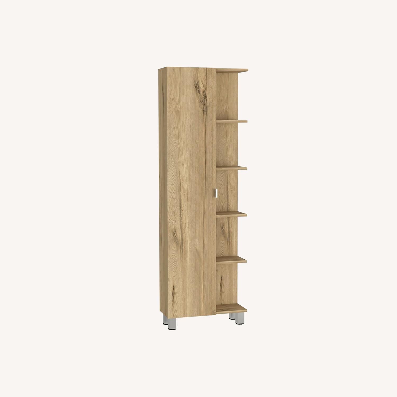 Seller's Notes:"Womppi Linen Cabinet will provide you with that extra storage space perfect for storing your linens, towels, or toiletries. Featuring a 58"" high single-door cabinet with three interior adjustable shelves. Also, five exterior shelves are perfect for displaying your decorative items. Four adjustable metal legs will give help you have a sturdy cabinet on any uneven floor. A wall installation kit is provided to avoid any type of tip-over accident. Designed with elegant light oak manufactured wood finish. Dimensions: Height: 62"" Width: 20,1” Depth: 8,5“ Furniture Type: Ready to assemble (full assembly required)Certifications: CARB phase II compliant – TSCA Title VI CompliantWarranty: 1-year warranty coverage in wooden parts- 1-year warranty coverage in hardware pieces since its manufacturing date is found in the lot number printed in the product box.Shipment details: Free shipping to the 48 contiguous states - delivery time: Between 2 and 5 days depending on the customer's location, season, and weather factors.Other details: This product does not include decorative or background elements; Check that the box is in good condition, and well packed, and check with the help of the manual that the corresponding parts have been included; For more information regarding warranty, shipment details, cancellations, returns & replacement parts go to the bottom section of our website to learn more; Installation & Assembly Instructions included."