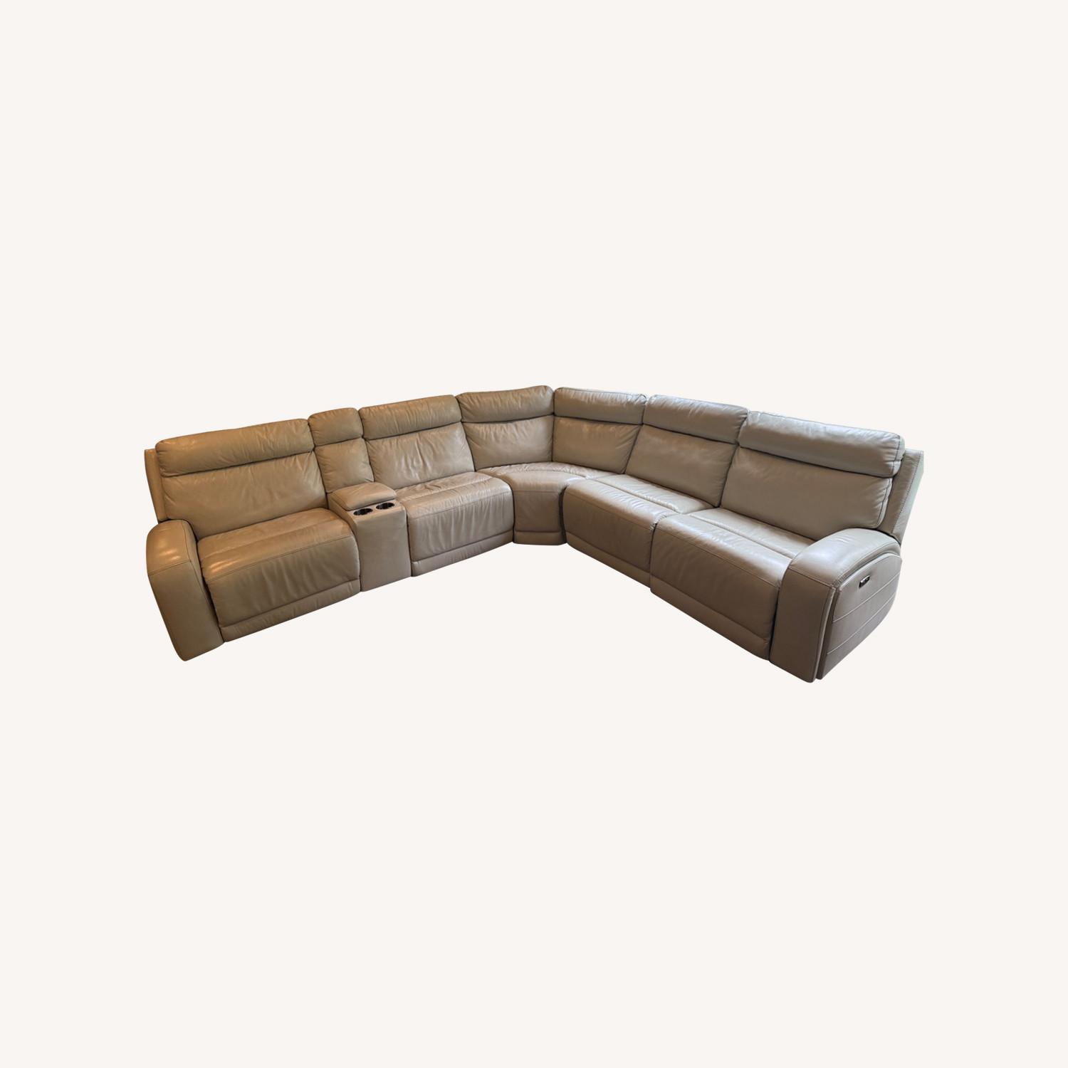 Seller's Notes:Gearhart 6 piece leather power reclining sectional with power headrest brought at Costco in 2021 May worth 2460$. This includes a recliner with headrest in 3 seats. It has some minor marks which kids made with pencils. It has a tow cup holder and a storage area. This is a great sectional which we love! Moving to a bigger city and a smaller home, so want to get rid of it.