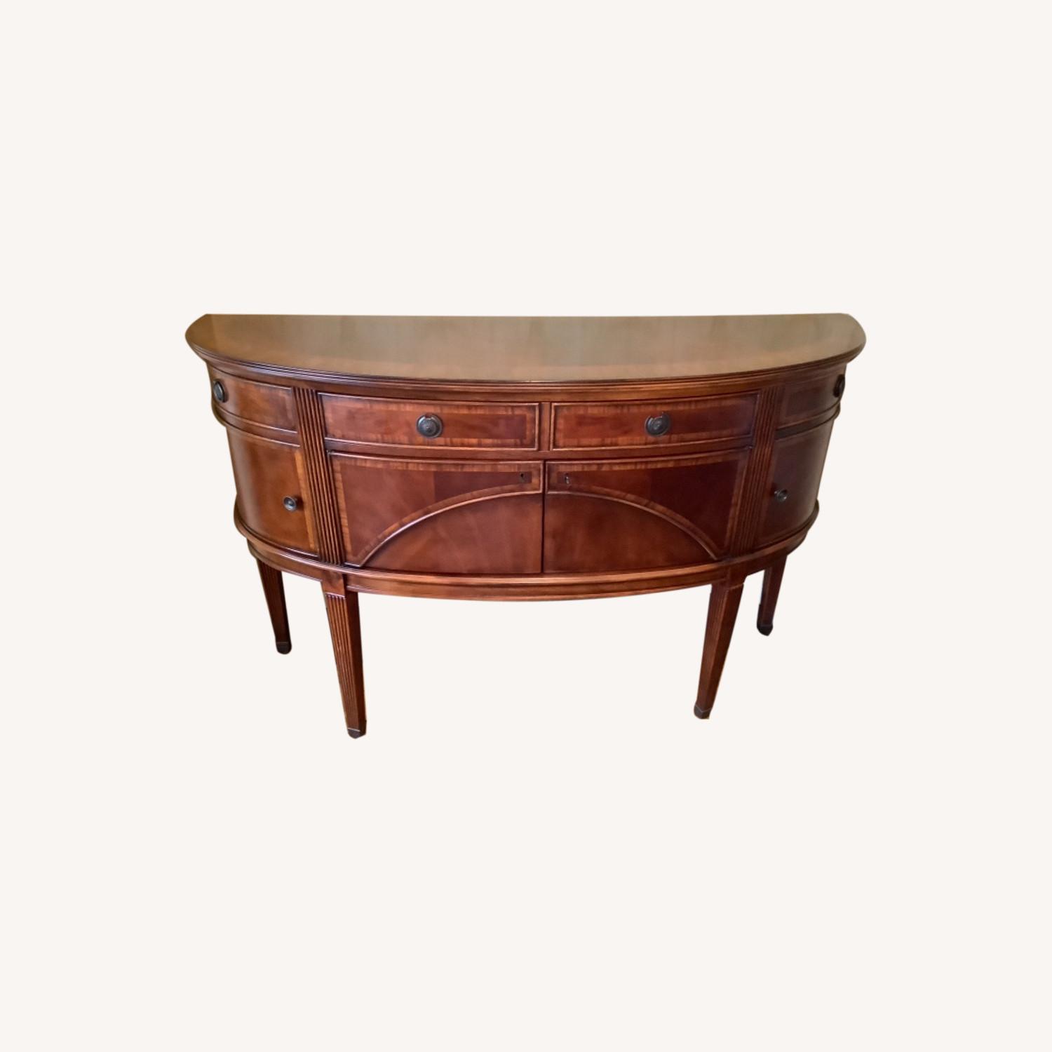 Seller's Notes:This buffet is a Samson International limited item from Costco. It really makes the room look great! It has lots of storage space. The drawer pulls fell off, they are included. We use a small spoon to open the top drawers. The key is also included, but doesn’t work. The bottom left opens from the inside, bottom right opens by pulling the key and not turning. Left and right side storage doors both work as they should.