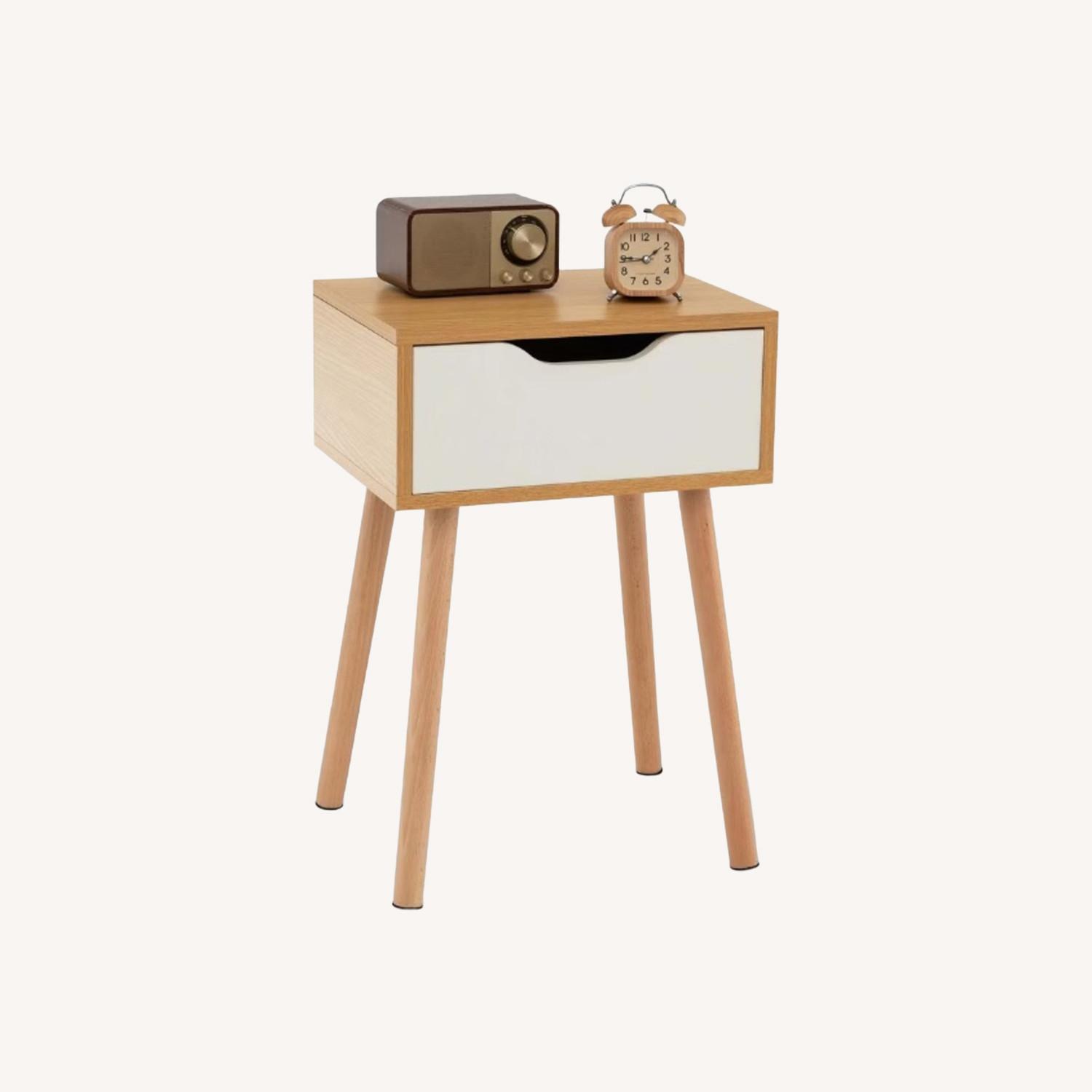 Seller's Notes:Enhance the aesthetics of your home with this mid century modern nightstand! As you can see, wide table top can perfectly accommodate your bedtime essentials, such as lamps, cups and books. The pull-out drawer also frees up more tabletop space. More, 4 sturdy beech wood legs enhance strong support and stability. This nightstand with compact size & handy storage deserves a try.