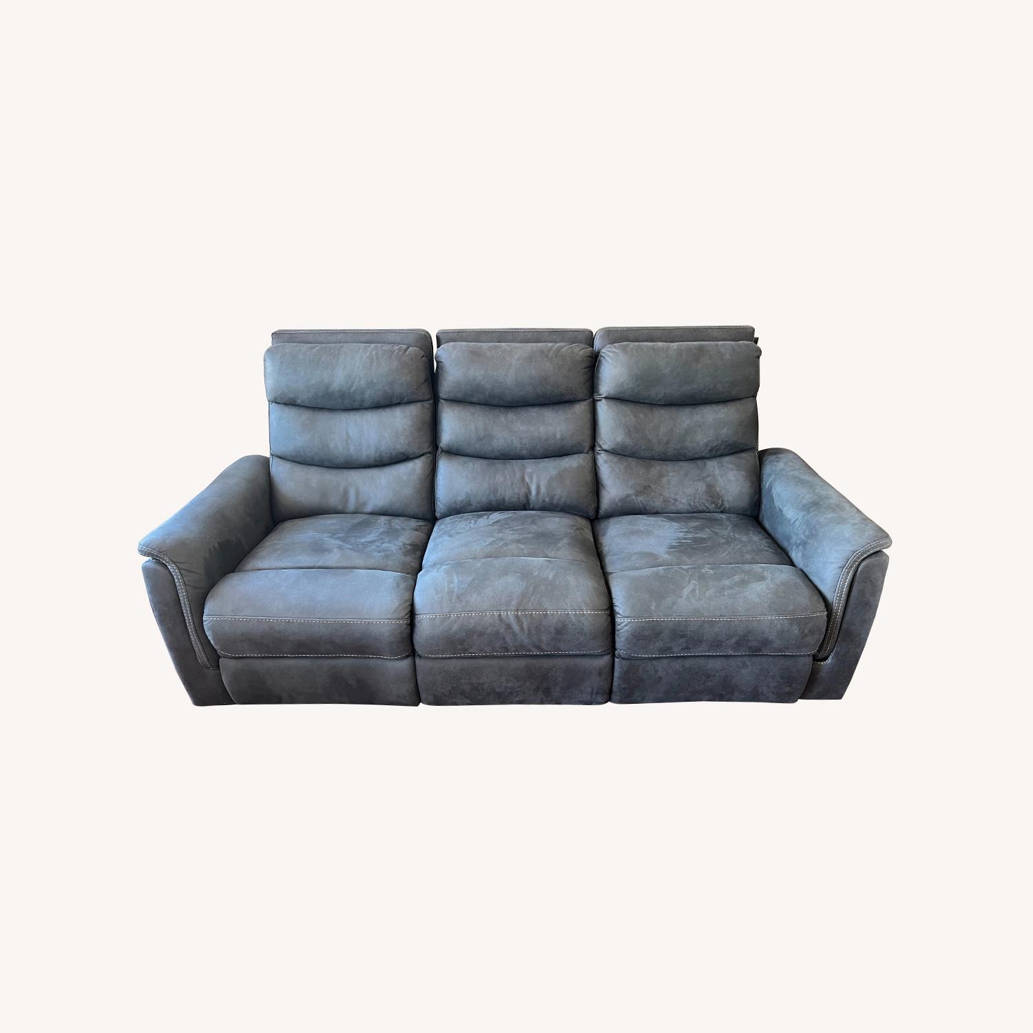 Seller's Notes:Dark grey / blue double reclining couch with cup holder drop down in the middle. One year old, barely used.