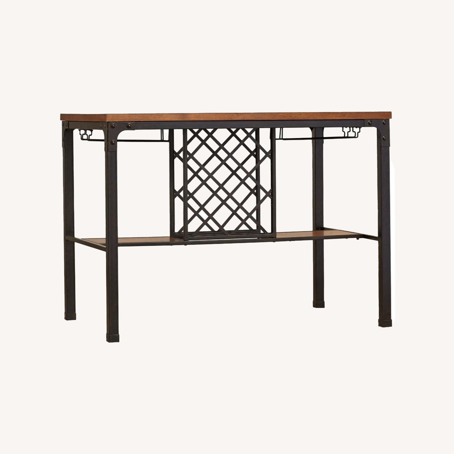 Seller's Notes:Perfect counter height dinning table with bottle and wine glass storage underneath. This works amazingly well as both a table and extra prep counter space for cooking. Seats 4 very comfortably with room to spare.