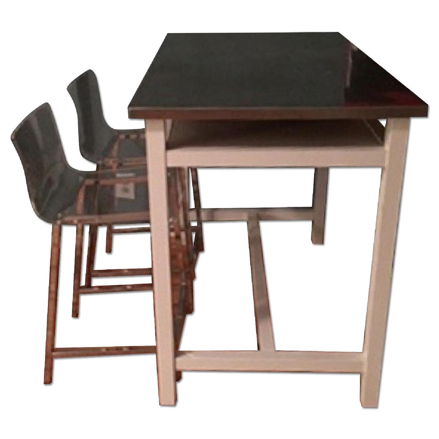 Seller's Notes:Vapor 30" acrylic bar stool Table - L 45"; H 371/2"; D 28 1/2" Steel top table with acrylic bar stools - table top has some minor blemishes and one area on the table leg has a scratch. Pictures of both included.