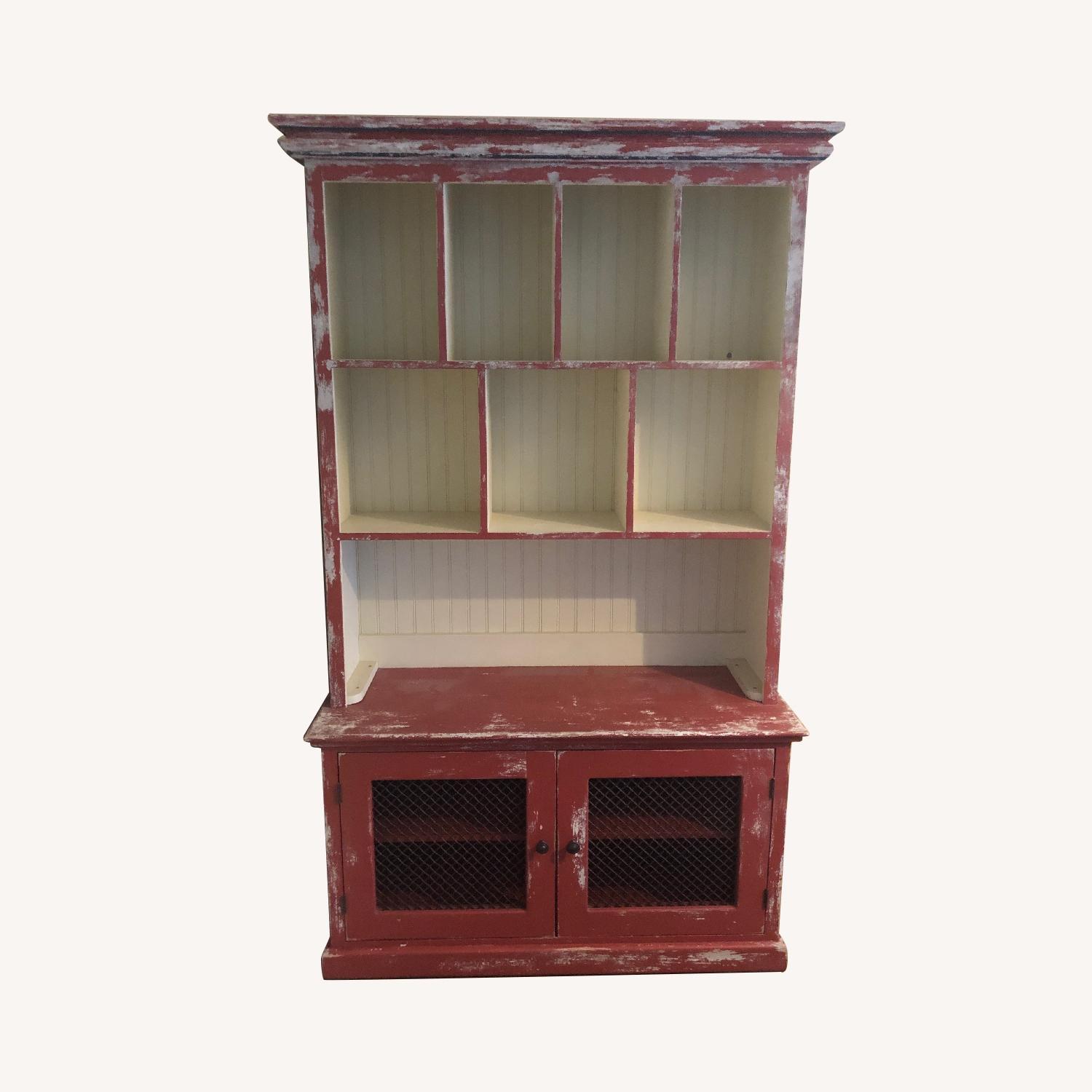 Seller's Notes:This is a great storage unit. We bought it with a distressed feel, the paint since then has chipped more (just want full disclosure as shown in the pics). This product is in excellent shape, is very sturdy and well made (but you might want to repaint it)...Storage below and above and the top part comes off (4 screws) to allow for easy getting in/out of building/rooms