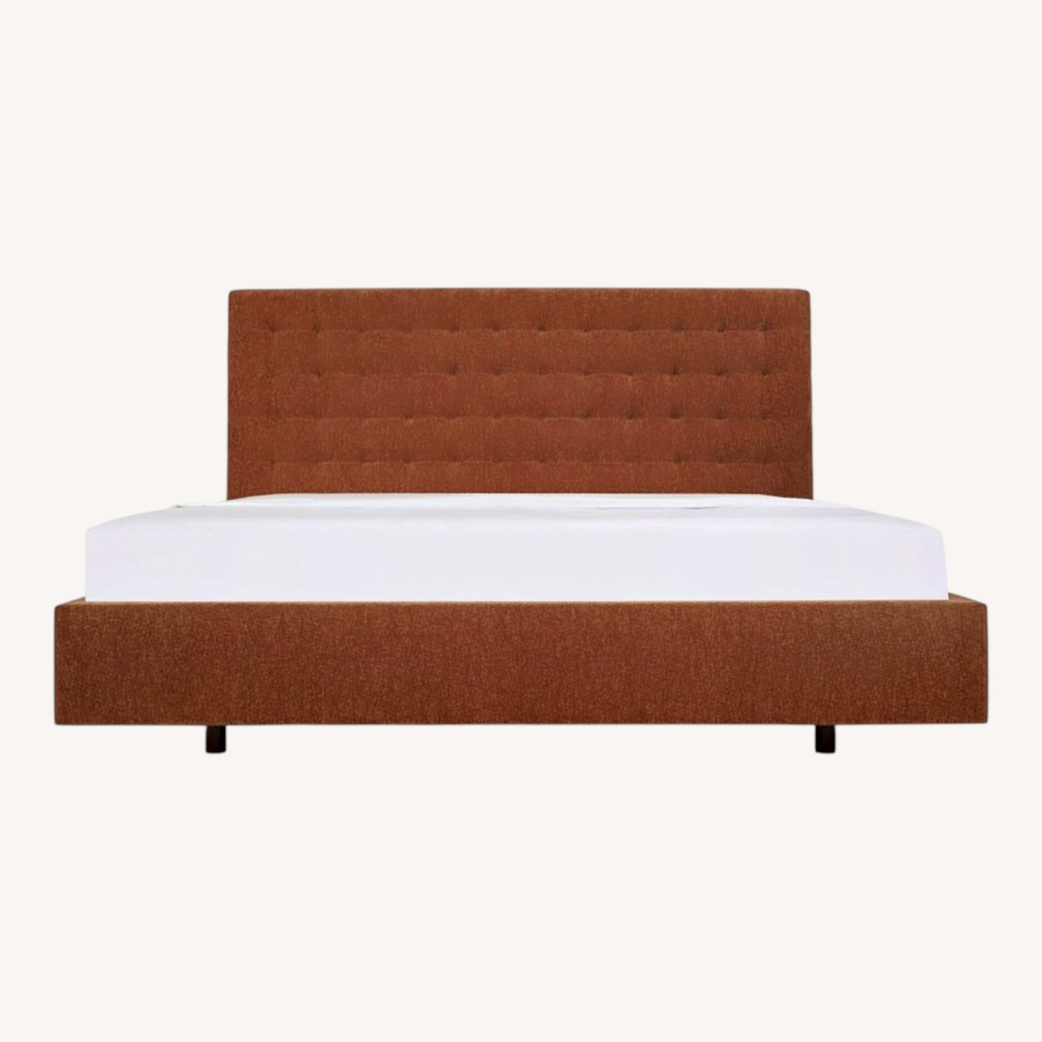 The Court Bed brings a bit of grandeur to the bedroom. A tall, box-tufted headboard lends a tailored silhouette, while inset wood legs create a floating effect. The name nods to both form and feeling—regal yet grounded.