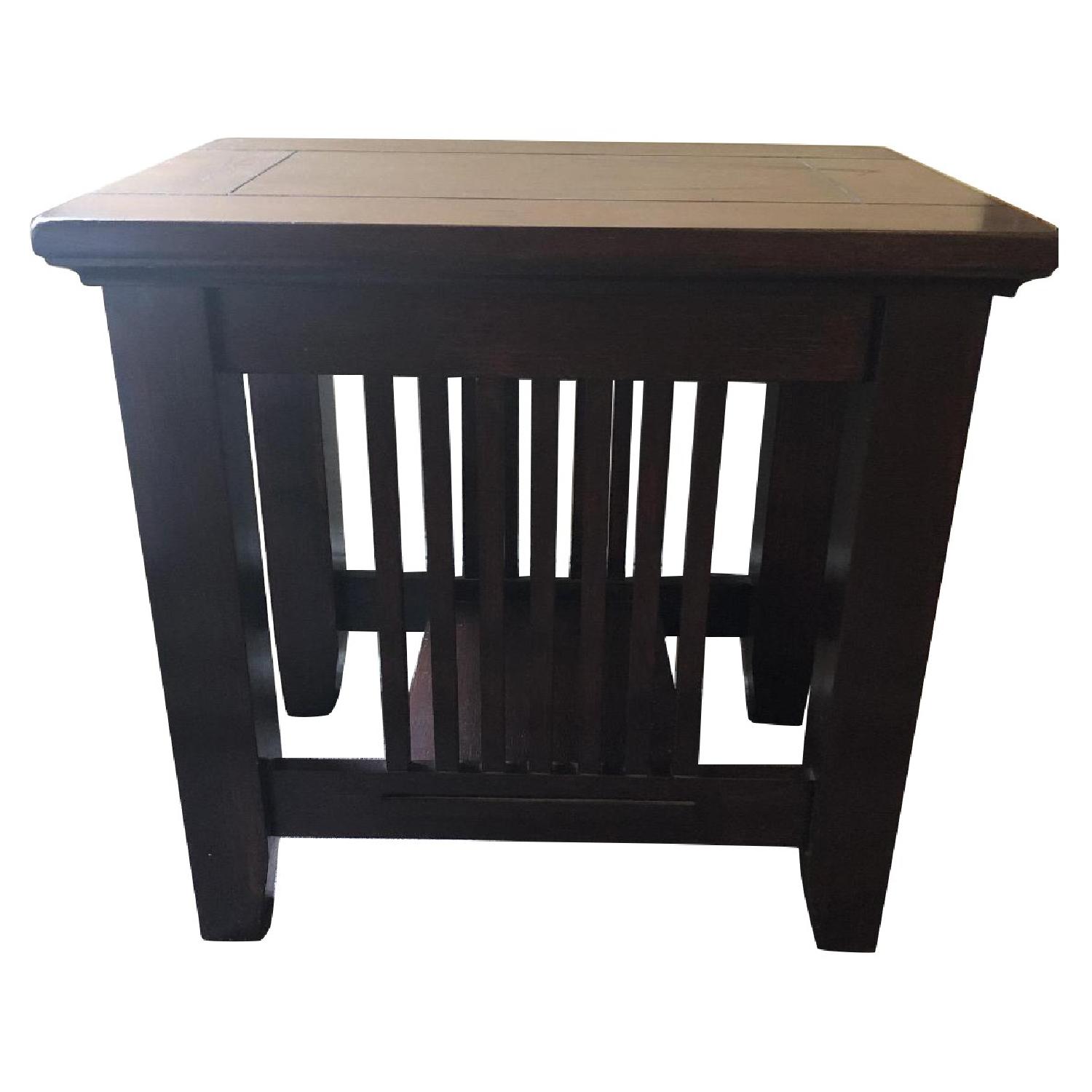 Seller's Notes:Beautiful craftsman style side table in almost perfect condition. Wonderful rich dark color and strong and sturdy design. This table is a 9/10