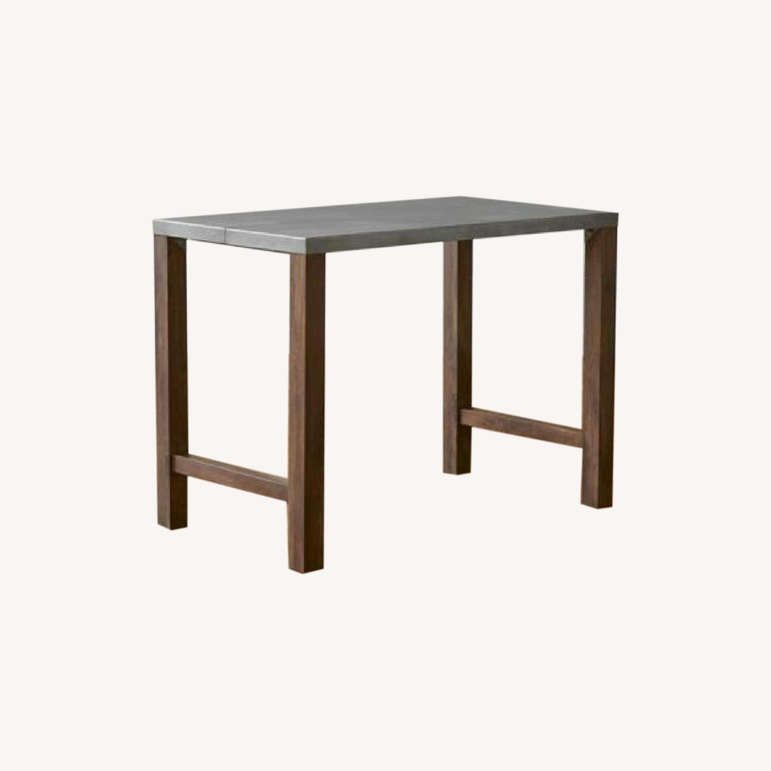 Seller's Notes:Crate and Barrel high table with a galvanized zinc-treated top and solid mango wood legs. I love this table and am so sad we can’t take it with us when we move.