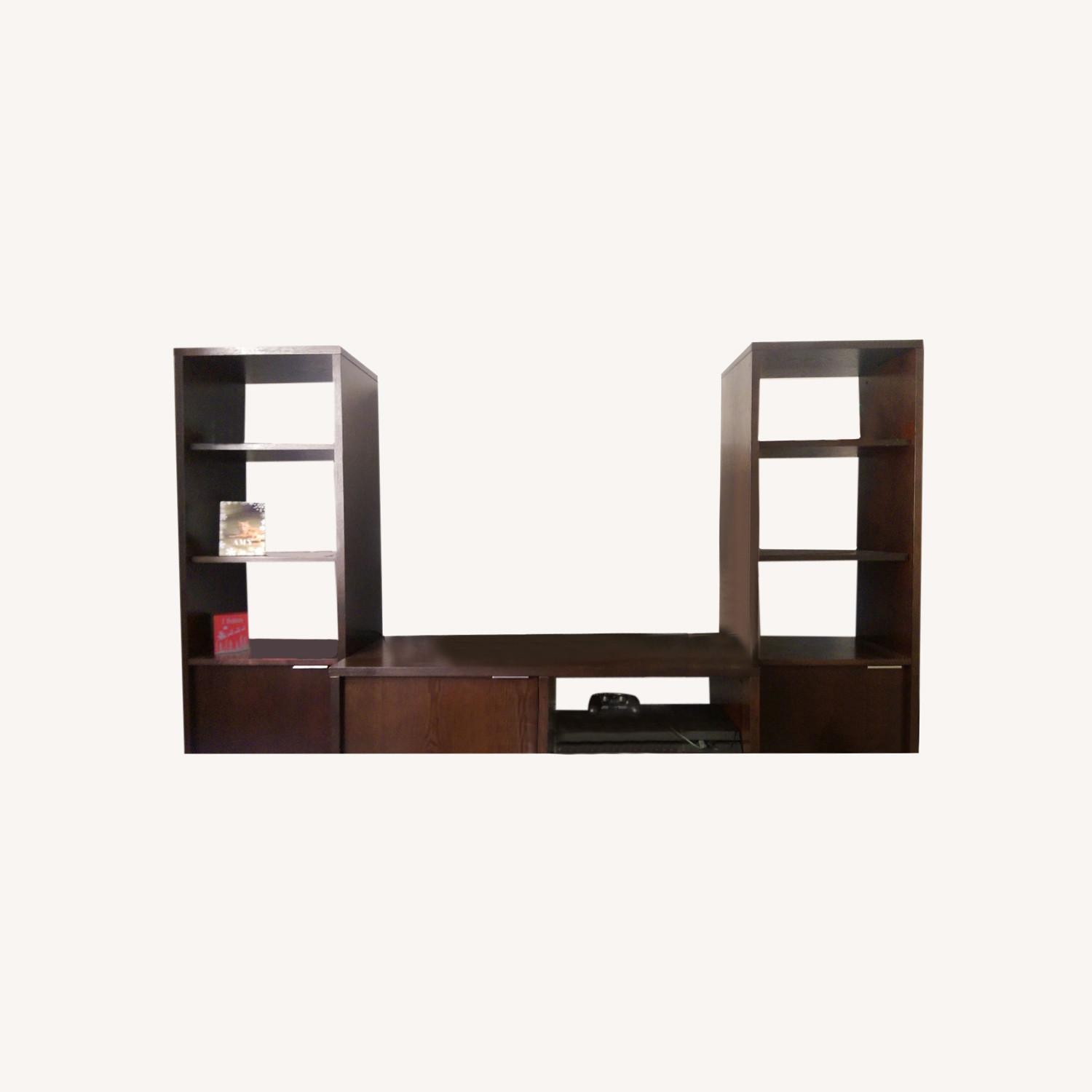 Seller's Notes:Dark espresso stained solid wood with silver legs and handles. All shelves are removable and adjustable. Bottom cabinets have a shelf in them as well. Very heavy and sturdy on both carpet and hard wood. Originally purchased from Crate & Barrel in 2011 for $1197. Comes with original assembly instructions. Minor nicks in the wood on a few corners. It began its life in NYC, moved to St Louis, back to NYC, and now finally in NJ. We love it, but we just can’t find the right place for it in our new house.