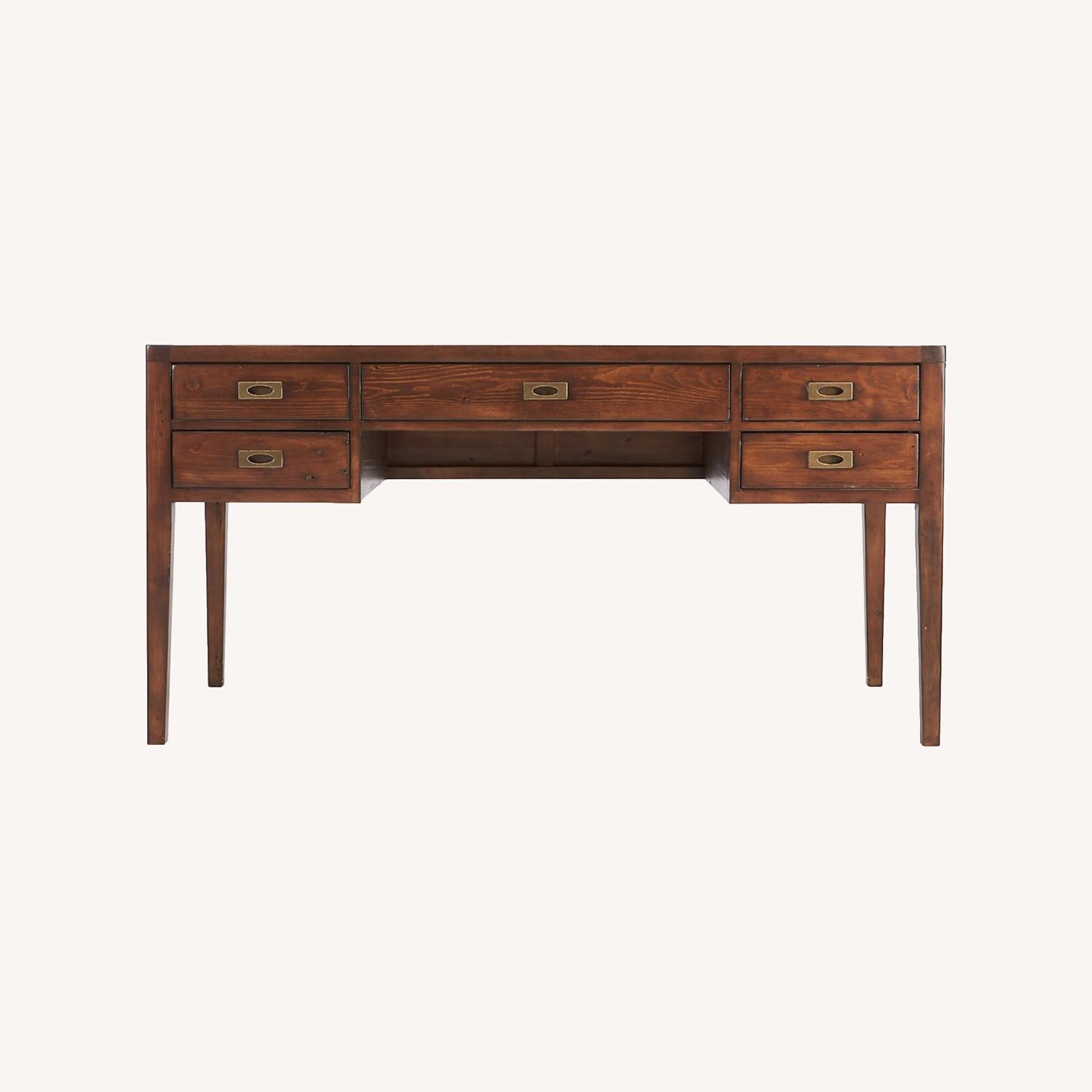 Seller's Notes:Two year old desk in excellent condition. Rustic yet refined with aged brass details. Extremely sturdy with ample drawer space for reducing clutter. Currently retails for $899 + tax.