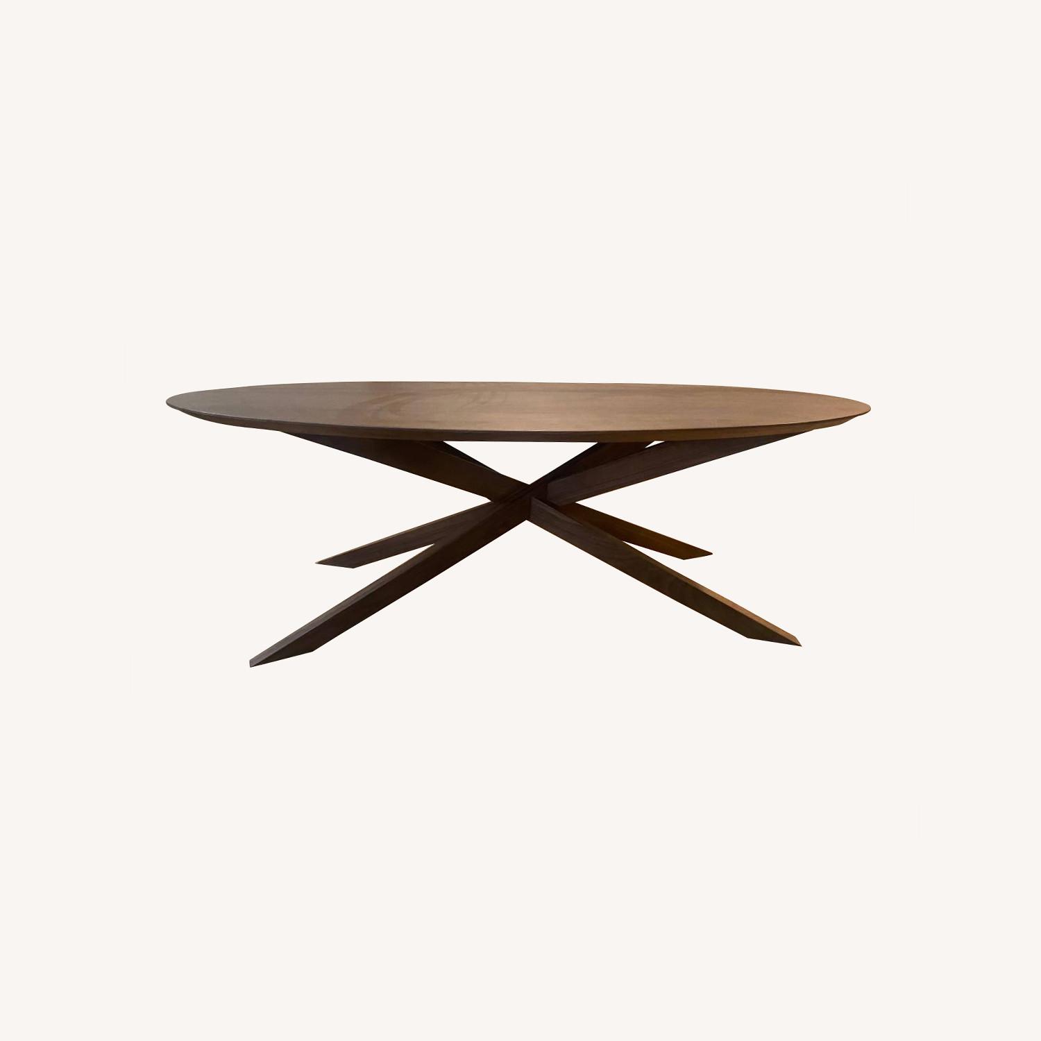 Seller's Notes:modern Apex oval coffee table solid walnut wood. Almost new, bought it fro Crate and Barrel