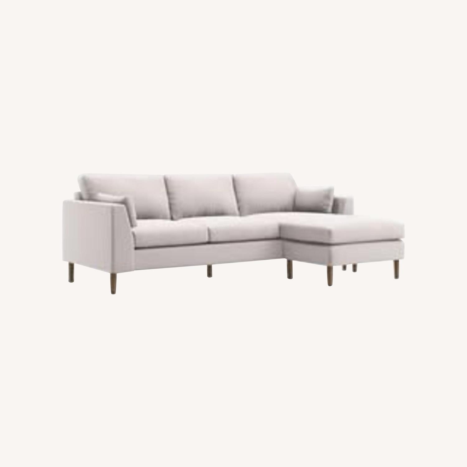 Seller's Notes:Crate and Barrel Avondale Wood Leg 3-Seat Lounger In Tahoe Fabric in Powder