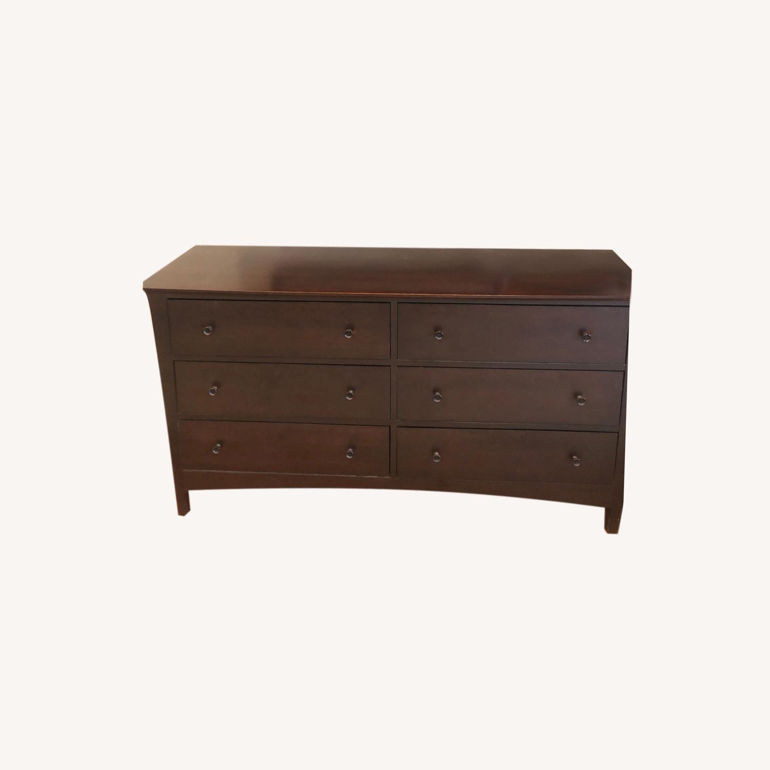 Seller's Notes:Crate & Barrel Dark Wood 6-Drawer Dresser. Solid wood, with minor wear on the corners but otherwise in great condition.