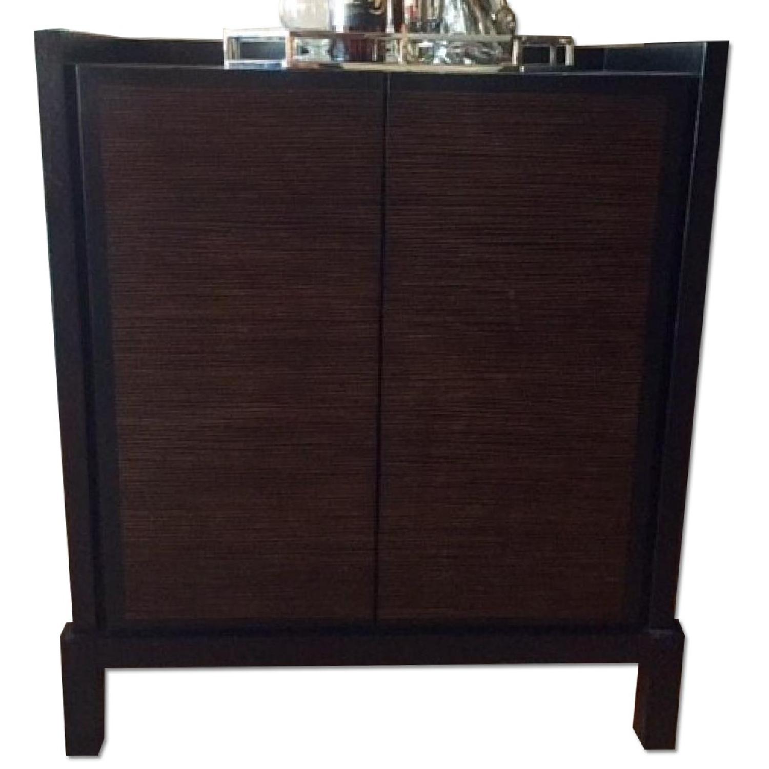 Seller's Notes:This Crate & Barrel cabinet can be used for storage or as a bar (like pictured) - the unique doors are made of hand-laid bamboo strips inlaid into the wood and glazed over. The rest of the material for the cabinet is made of wenge wood - the inside has three (3) shelves and one (1) pull out drawer for storage. Average wear and tear with age, there are a couple minor scratches (as you can see from the pics, they are hard to see, so not too bad).