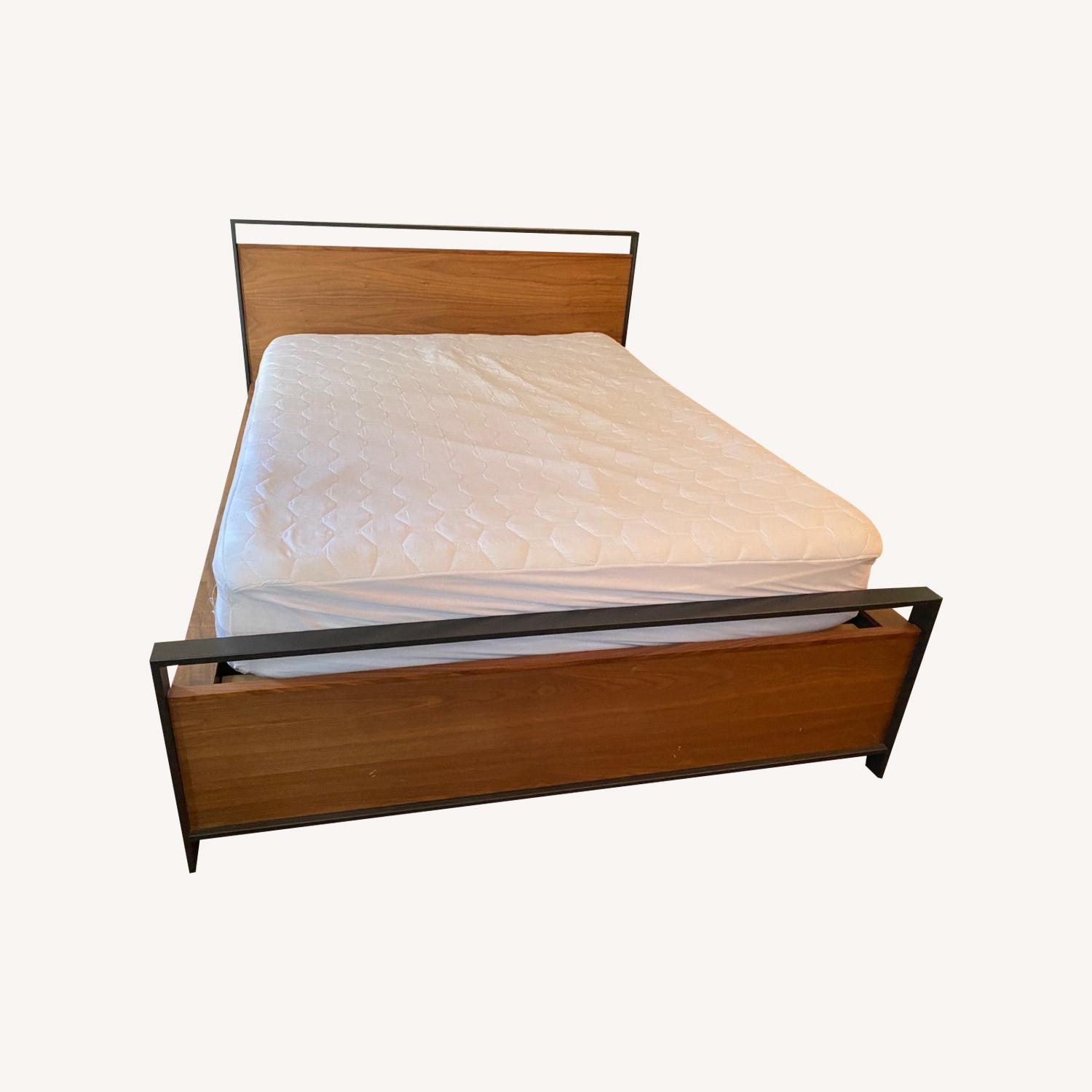 Seller's Notes:This Crate & Barrel Storage Bed has been unbelievably practical and beautiful with lots of storage. The bed is sturdy, built out of heavy Walnut & Steel. A storage workhorse, this Bowery platform full bed softens a linear, urban design and ups the ante with generous built-in drawer space. Defined by its clean lines and mixed material construction in warm walnut and deep charcoal metal, this versatile, industrial-inspired queen bed conceals deep drawers offering the space equivalent to a 6-drawer dresser. The Bowery storage bed's open frame outlines a walnut headboard and footboard, lending an airy quality. Walnut veneered drawer fronts showcasing continuous grain highlight the queen storage bed's modern aesthetic.