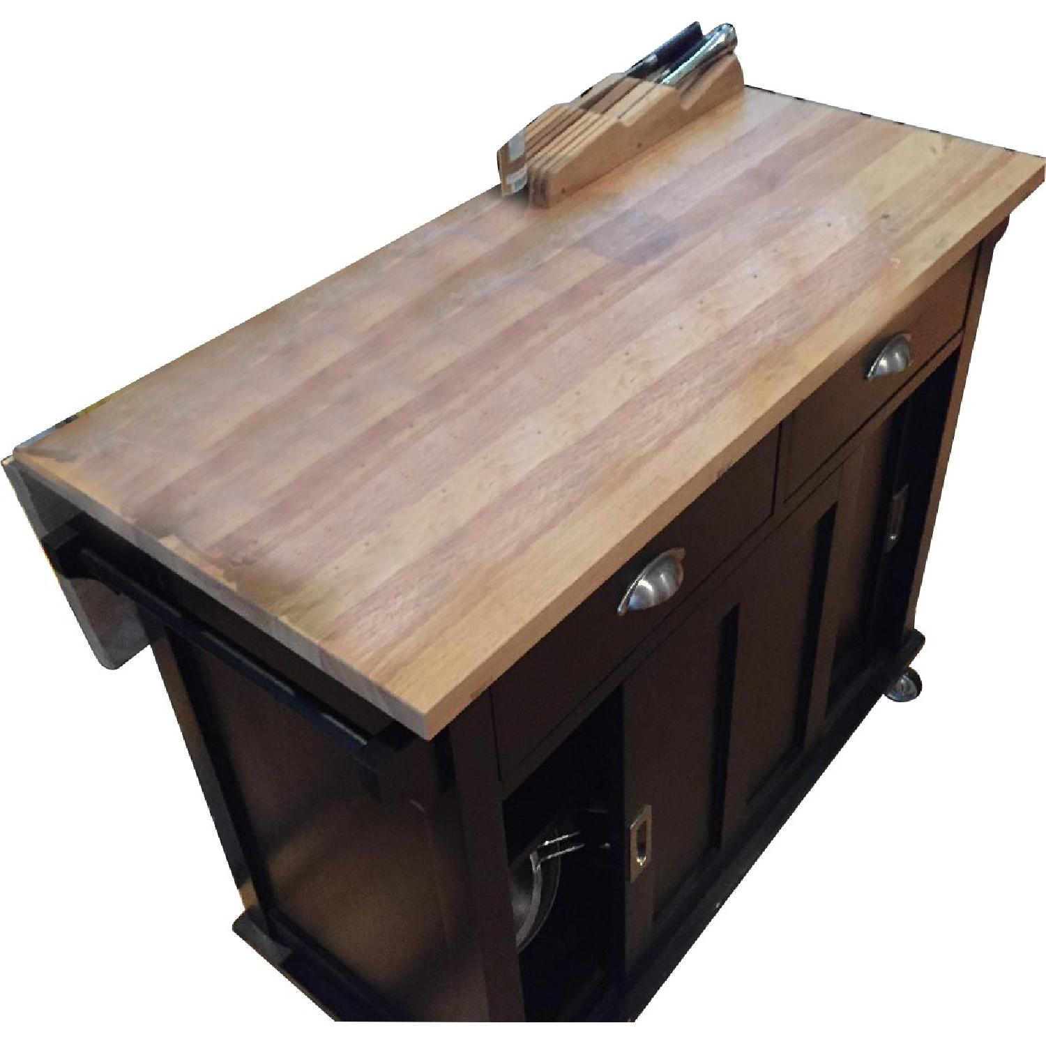 Seller's Notes:Moving out of town. Note - the island is 30.5"D with leaf up. http://www.crateandbarrel.com/belmont-black-kitchen-island/s152245?b=1&a=1552