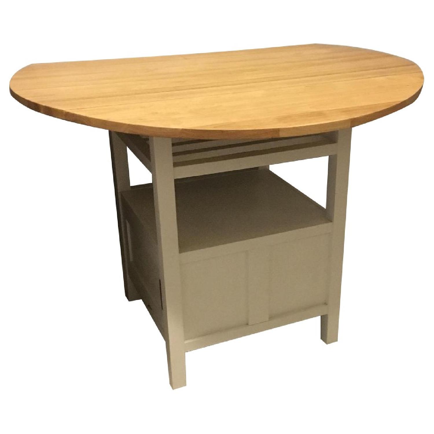 Seller's Notes:This Crate and Barrel Belmont high dining table was purchase 3 years ago and was perfect for my studio apartment for eating, doing work on, and actually using as a counter top for cooking. There are two leaves on both sides and I removed one of the leaves to make the table fit better in my apartment but I still have the other leaf and its very easy to attach. It was very well taken care of and was cleaned almost once a day. Of note, the 47 inch "width" is actually its diameter.