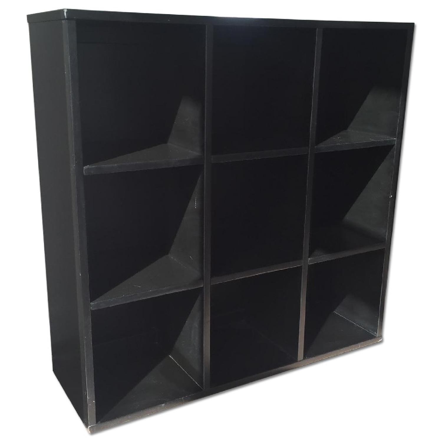 Seller's Notes:I've loved this identical set of black Crate & Barrel bookshelves since I first bought them, but they not longer fit my new apartment! Whether you buy just one of the shelving units, or if you buy both, they're endlessly flexible as functional bookshelves or for display in your entry hall, in a living room, as sofa table, in a bedroom, or even as an TV entertainment unit item. Super sturdy and in nearly-new shape (thanks to my anal retentive tendencies), the horizontal shelves slide out easily if you want to double the vertical shelving space. Each "square" inside the shelf is 11" x 11".