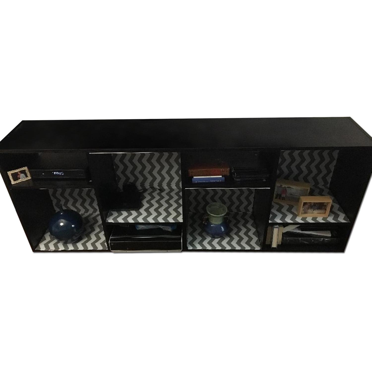 Seller's Notes:Great bookshelf from crate and barrel. Amazing storage space for upright bookcase or horizontal media console. We used it as an entertainment center for our 55" TV and stored books, our printer and cable box inside. I love this piece but my wife wants a white media console for our new apt. We put liner paper inside, which is easily removed. 27" wide, 15" deep X 74 height (if vertical bookshelf). 74" wide and 27" height if horizontal media consol