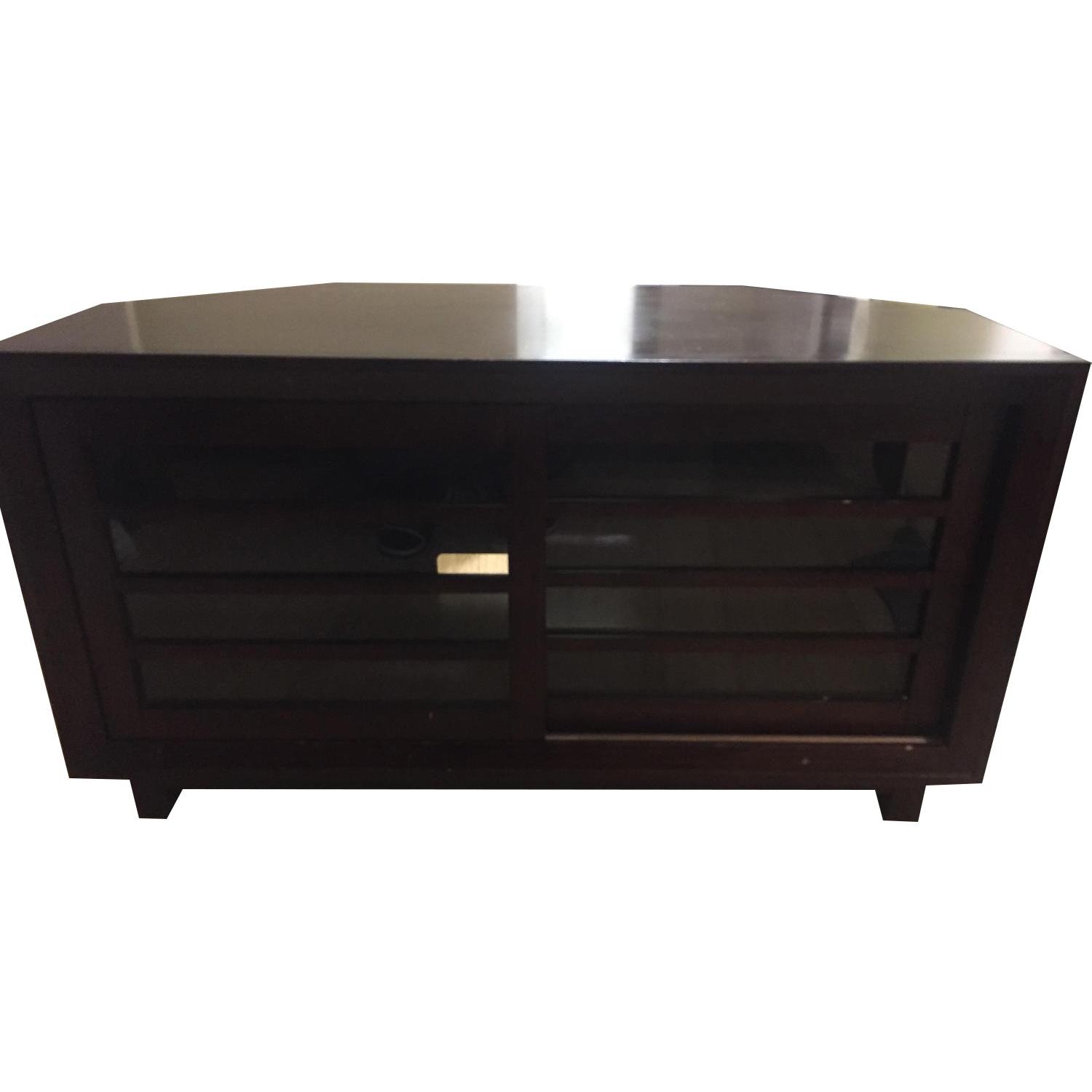 Seller's Notes:Crate & Barrel Corner Media Console - Farrow. A few years old with some minor nicks but in great condition. Recently moved to a new apartment where this item doesn't fit well for our new TV position. Otherwise we love this unit. Purchased brand new from Crate & Barrel for $500. Real wood with pre-cut cord holes in the back. Nice piece of furniture even if your TV is mounted. Sliding glass doors allow for infared remote control while closed. Wide enough to hold our flat panel printer, DVD player, cable box, AV receiver, and sub woofer.