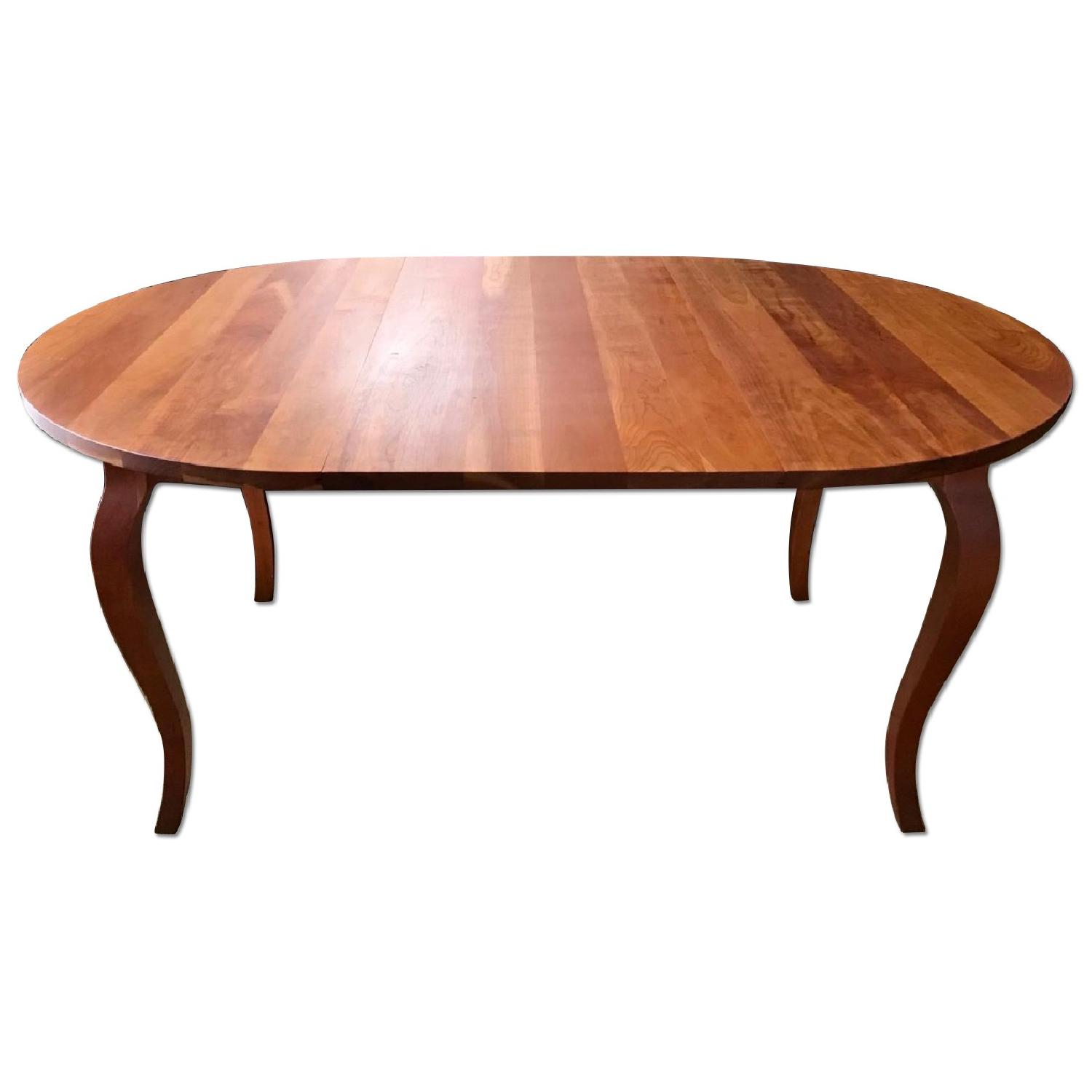 Seller's Notes:Original Price: $1839. Excellent Condition. From daily dining to that special event with guests, this table's compact, expandable, and well-engineered aspects are what we loved about it. The warmth of the wood is welcoming and casual, yet the legs add a bit of history and elegance. Everyday, as a round table, it didn't take up a lot of valuable space, yet when needed it was comfortable for up to 10 people! The images in my profile show how it fit into our open plan living/dining area very comfortably. 42”Round x 29”H, plus 3-leaves, each 21”L x 42”W. With 1-leave: 63”L, with 2-leaves: 84”L, with 3-leaves: 105” L. Seats 4-10 people comfortably. Material: Natural Finish Solid Cherry Wood. Sanded, oiled, and buffed prior to offering. Over-engineered with steel telescoping extension mechanism. Designed by The Asher Benjamin Studio of Newburyport, Massachusetts for Crate & Barrel. From Smoke-Free and Pet-Free Home.