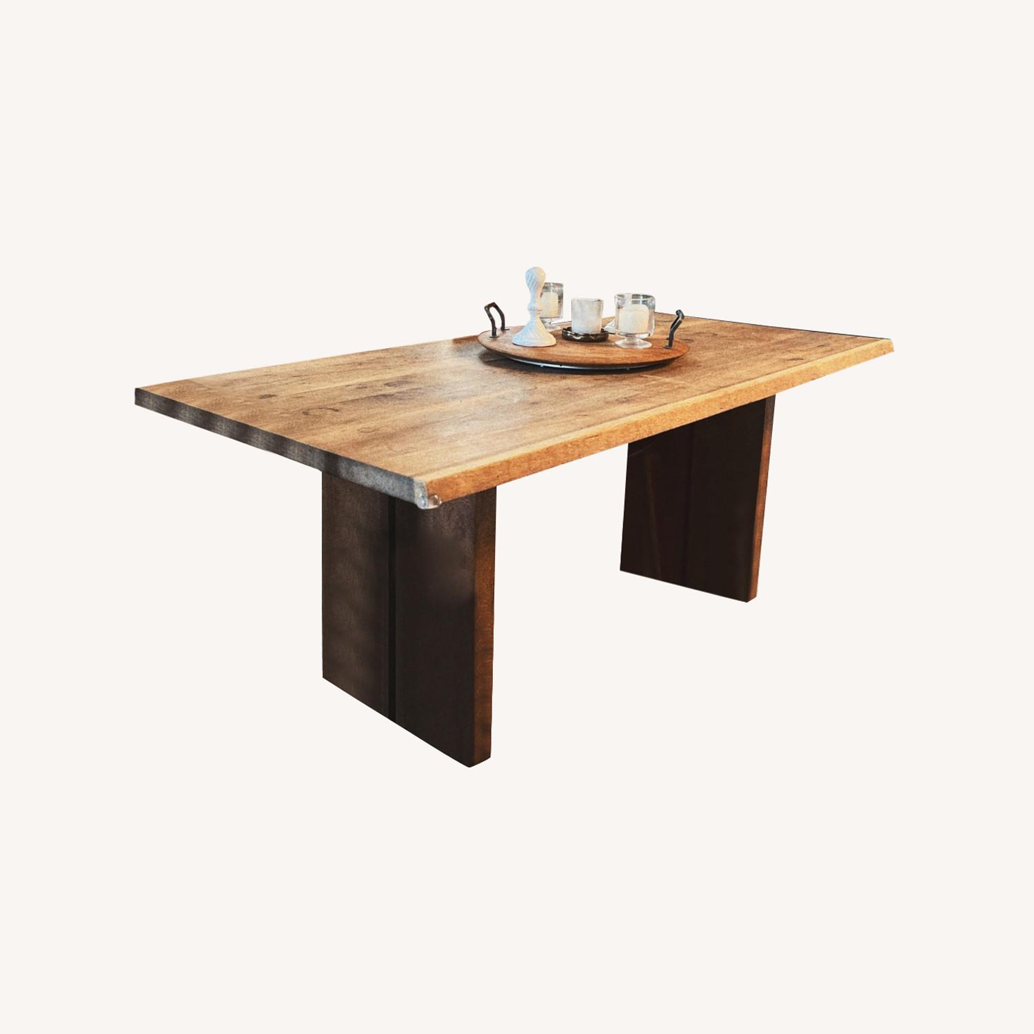 Seller's Notes:We've had our Crate & Barrel Monarch rectangular dining table for about 6 years. Made of rare lengths of solid walnut chosen for their beautiful cathedral graining, we have enjoyed having this table as a centerpiece in our apartment for hosting dinner parties, working, baking, wrapping presents, etc. While the table does reflect how well-loved it has been - there are watermarks, burns, stains, - the patina is rich and reflects the much sought-after distressed look made popular by Restoration Hardware. Seating six, the smaller Monarch rectangular dining table has a subtle live edge that respects the living nature of the wood, allowing it to expand and contract with seasonal changes in humidity. A subtle blend of browns and greys, Monarch's unique shiitake finish creates a fresh neutral tone that mixes well with other wood finishes. We would keep this table but we are moving so it's time for this table to start a new life with a new family!