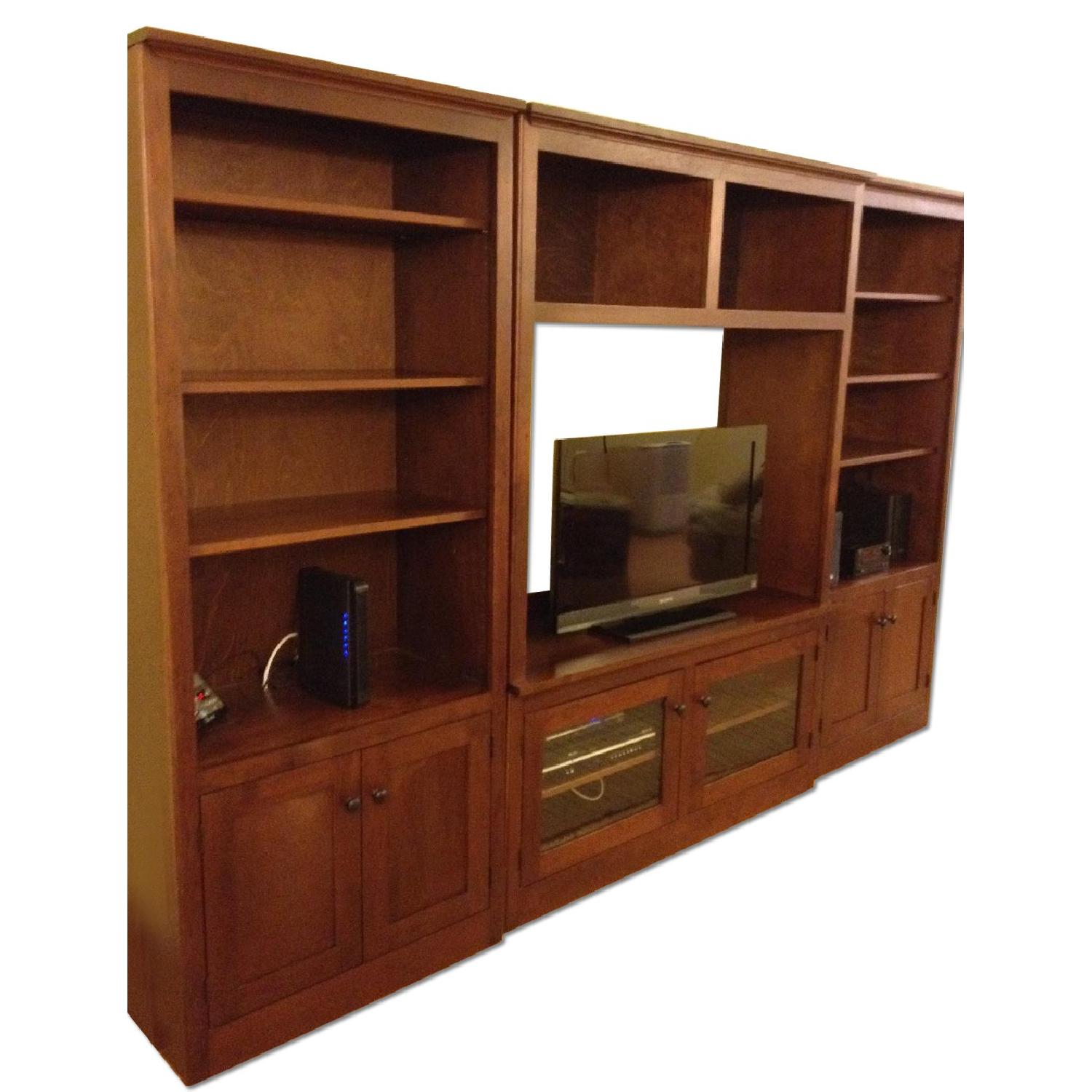 Seller's Notes:I am in love with my Crate & Barrel wall unit!! But I am moving into an apartment that already has one. Sadly, it must go. The condition of the center is excellent! Like new! Minus two blemishes (see below) The hutch top is removable. The shelves are movable. There are multiple openings for wires for your media. Blemish areas: ~One thin line/scratch going down the left hand inner wall of the hutch top. See photo that shows the line (photo of wall left of TV). ~Greatly hidden to the eye because of their location behind the lower glass windows are scratch marks.. More specifically, on the very bottom shelf behind each glass door of the central plasma stand are multiple scratch marks. (see photos) With the glass doors closed, they are hard to see. Plus, this is an area where you will most likely store items. I did not even realize they were there until now. Otherwise the condition is excellent! I hate to part with this gem! Enjoy!