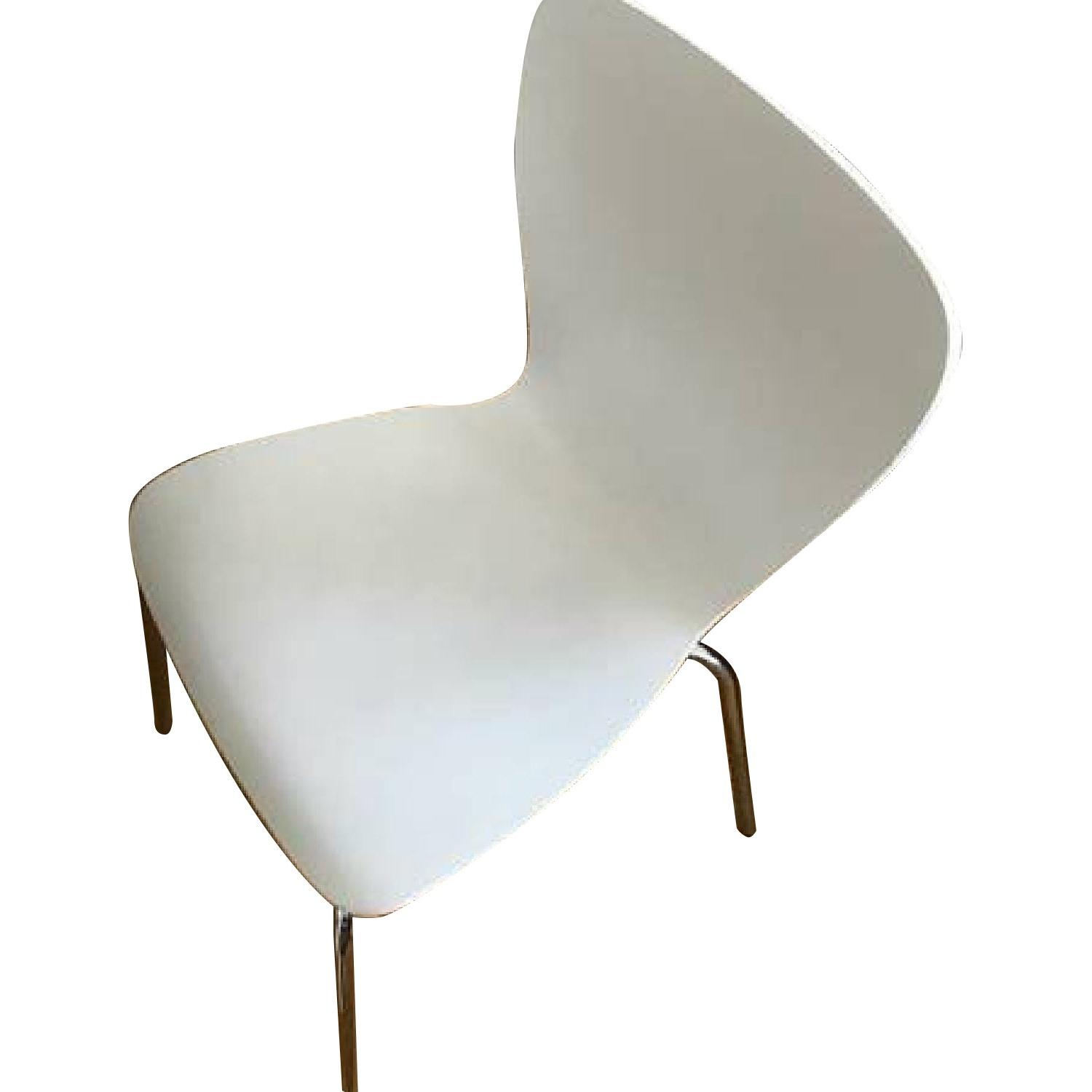 Seller's Notes:Have to unexpectedly move due to work. Used for dining chairs. Used for less than 6 months. GOOD AS NEW! Original Purchase Price: $79.95 each + tax + shipping 4 available. Designed by Mark Daniel of Slate Birch bent plywood and basswood veneer White painted finish with polyurethane topcoat Chrome tube legs Stacks up to 4 high