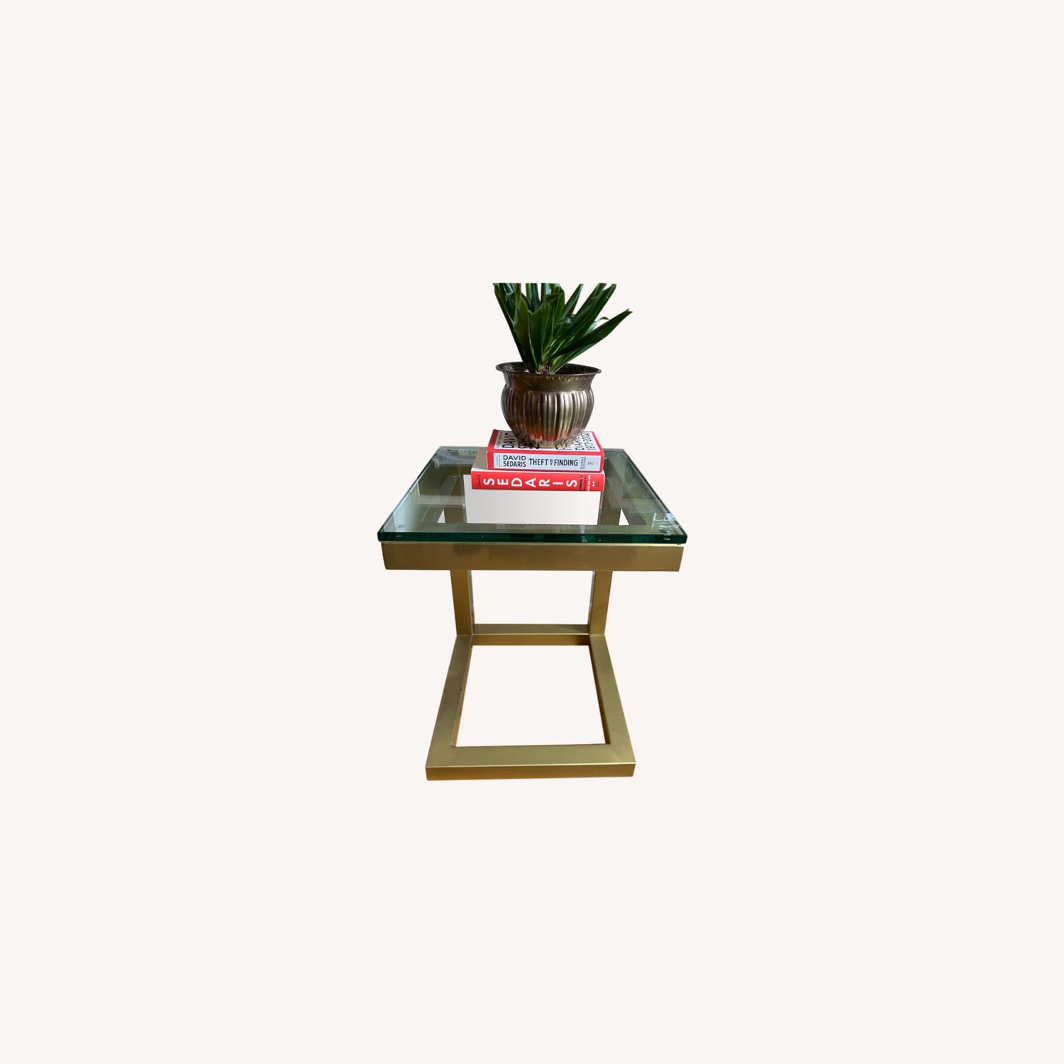Seller's Notes:Two (a pair) gorgeous gold painted side tables. Could use as nightstand or in modern living room. Glass top pops off for easy cleaning. Happy to discuss selling one individually instead of set.