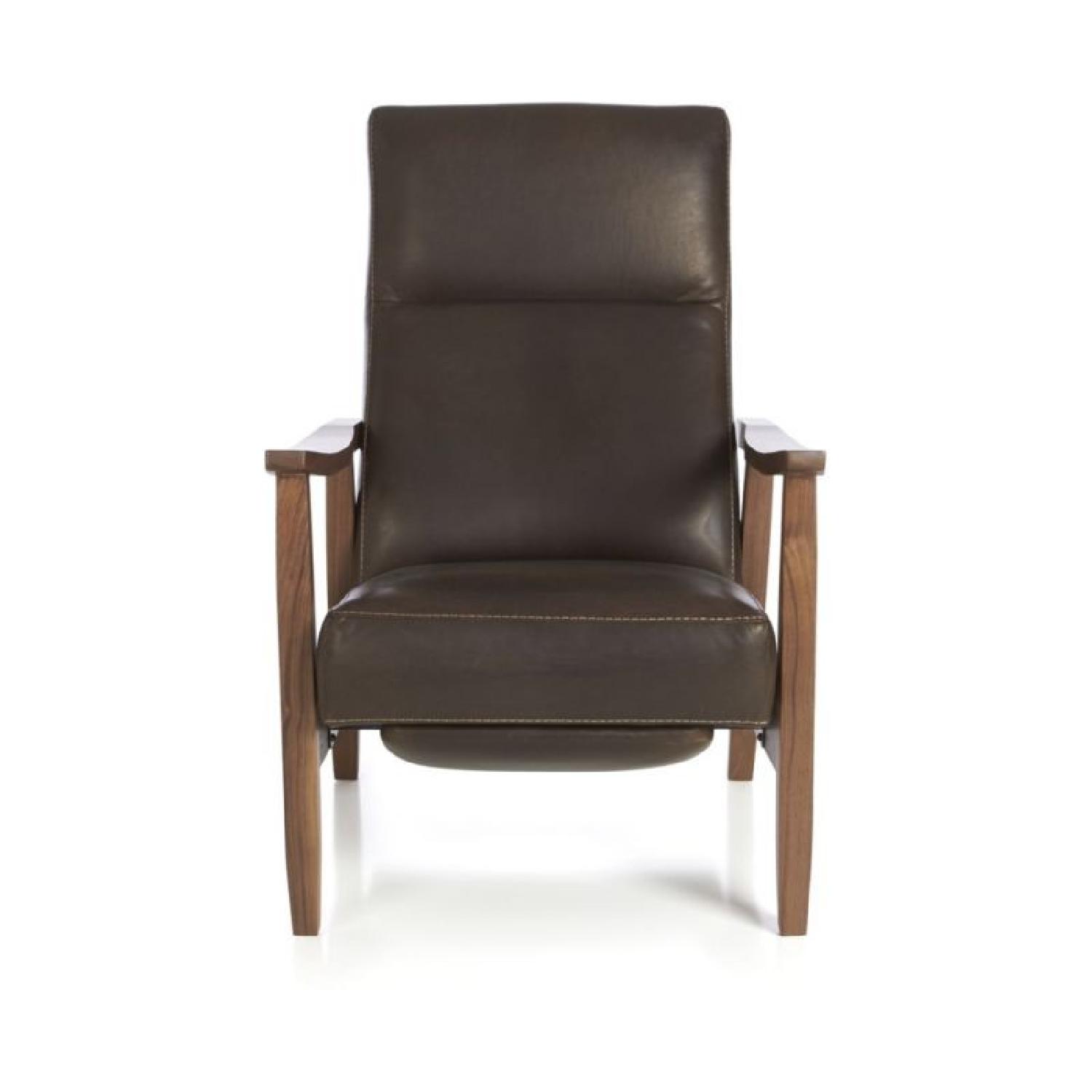 Crate & Barrel Greer Leather Wood Arm Recliner