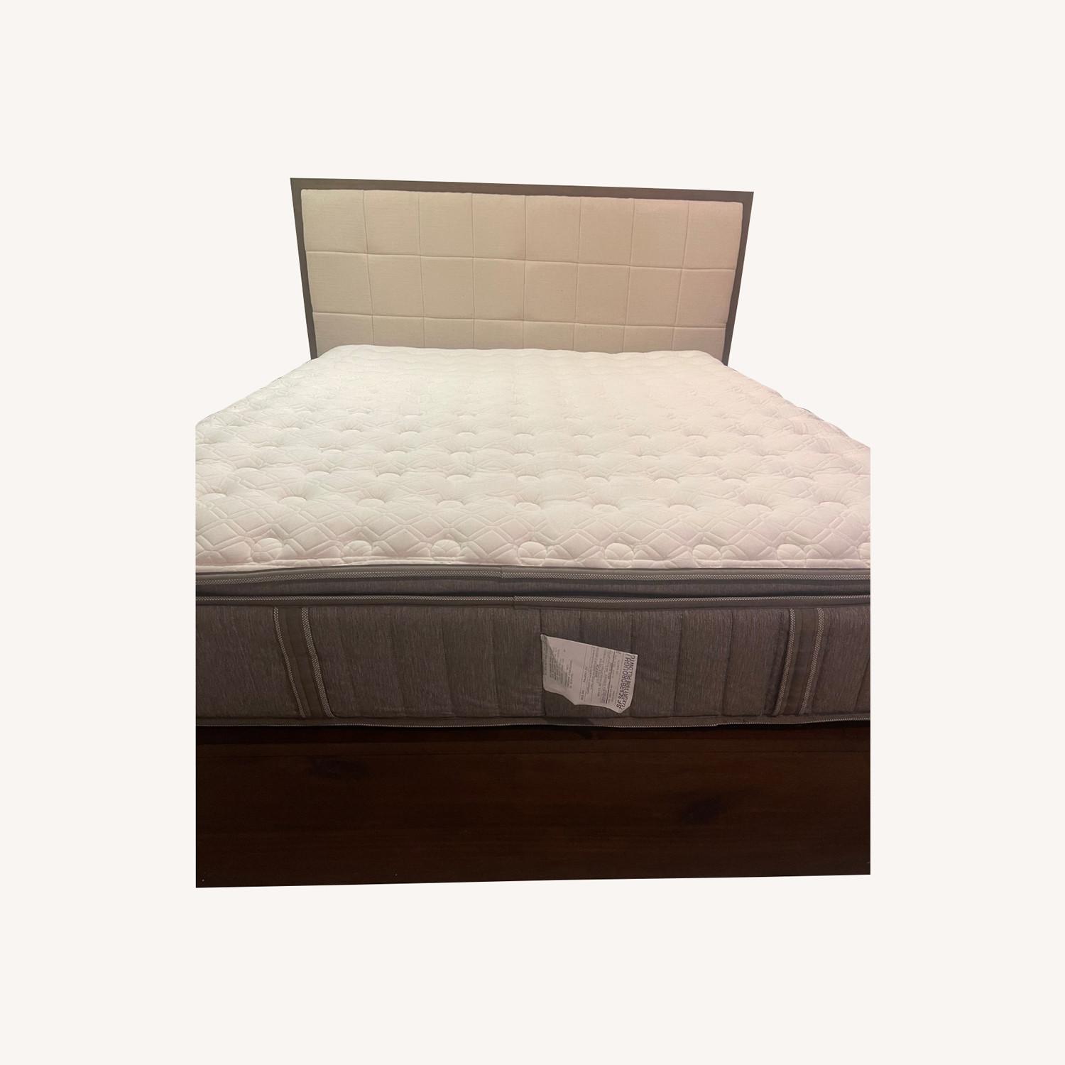 Seller's Notes:Casually elegant Hayden showcases the beauty and grain of acacia wood with a rich, chocolate brown finish. The perfect bed, top to bottom, Hayden's tailored and tufted headboard tops off six hidden drawers below. I LOVE this bed frame and it makes me so incredibly sad to part ways with it. This design is discontinued as well. Super sleek and tons of room in the drawers below. Really hoping to find someone who loves this as much as I do! No damages except for a very minor scuff from an office chair on one of the corners. Easily remedied with a little attention.