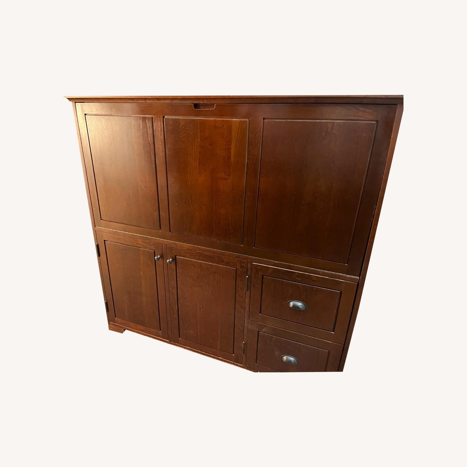 Seller's Notes:Really convenient - 1 piece of furniture that serves as a working desk, filing cabinet, computer cabinet and storage unit. The unit is in good condition (with normal wear and tear). It closes and hides all paperwork and working area, making it easy to place in a living room or other common location in a smaller apartment. Design is transitional and fits many types of decor.