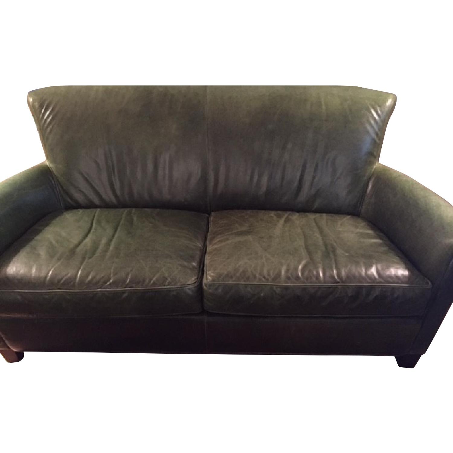 Seller's Notes:This classic hunter green leather loveseat has an authentic classic look, from its low seat to its angled back. It's is the epitome of comfort with 2 seat cushions crafted with luxurious comfort. Distinctive self-welting outlining the arc back and rounded arms are very much a nod to timeless design. A casual apartment piece with room for 2, this leather loveseat is the perfect accessory for any room. The real luxury is the quality and finish of the leather: Top-grain, full-aniline hides are hand-distressed to a rich deep patina, that will enrich over time.