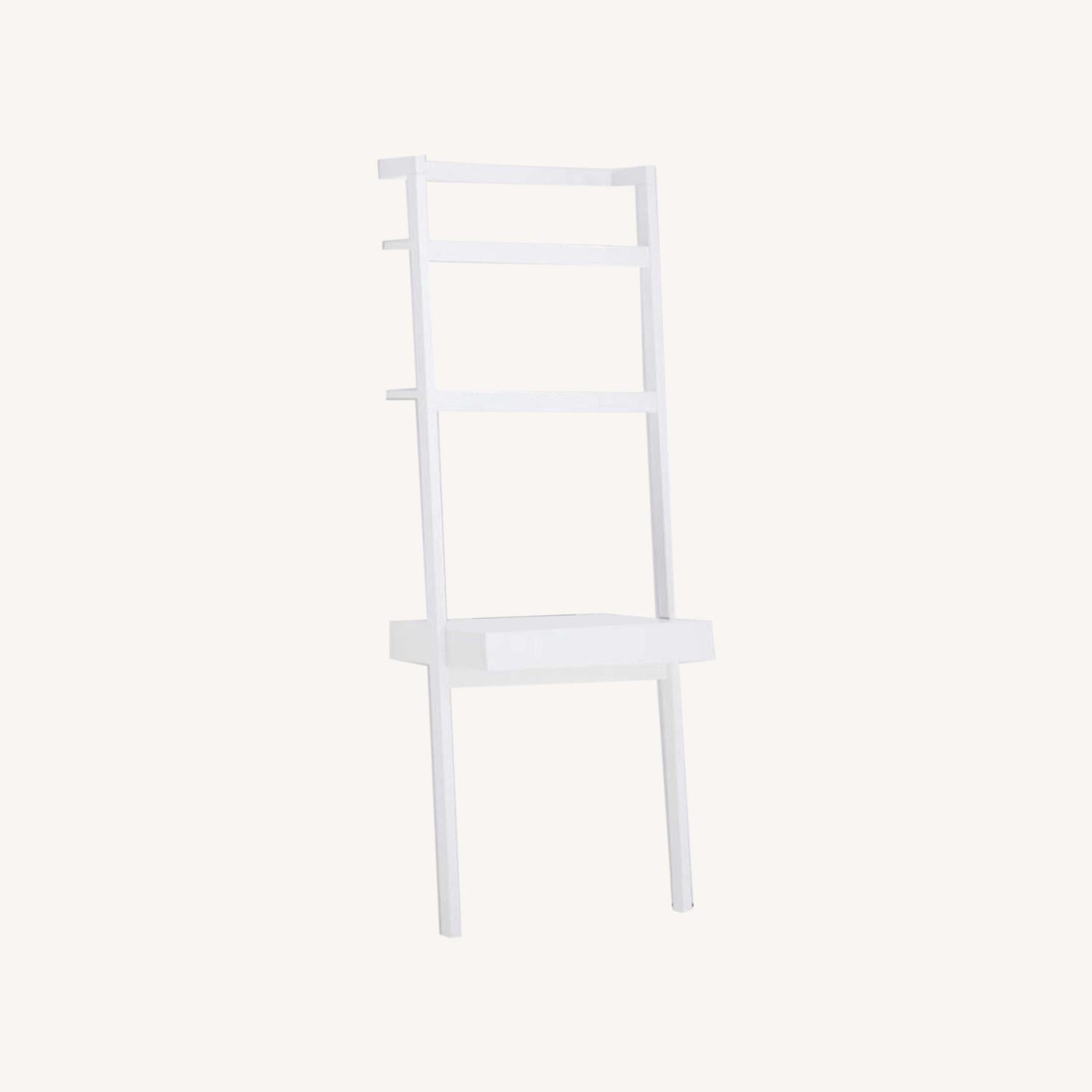 Seller's Notes:Clean-looking Sawyer uses an ingenious leaning, modular design to create a space-saving home office solution. The hardwood desk makes the most of wall space, extending vertical uprights at a stylish angle with two fixed shelves and a work surface with a single drawer. Dimensions: 27.5"Wx20"Dx76"H Each shelf can support up to 40 lbs. Assembled but can be disassembled for transport, crack from shipping from C&B warehouse. Note: C&B Shipping minimum cost of $200+ when purchasing online / through store
