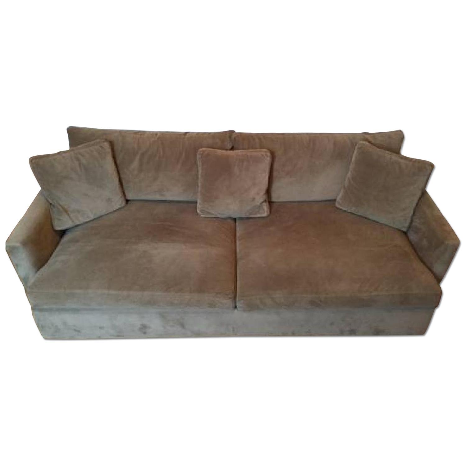 Seller's Notes:Crate and Barrel Lounge Sofa - 93" in Length - Retails for $1,699! Sofa is in good shape and has been very well maintained. Cushions are in great shape with no stains or tears. There is small tear in fabric on arm of sofa, which happened when first purchased while moving the sofa into apartment. The fabric is easy to care for and can be spot cleaned with warm water and soap or dry cleaned. The high performance fabric has the rich, soft texture of velvet and is perfect for high-traffic homes, engineered for durability and lasting saturated color. Cushions are foam wrapped in down and encased in down-proof ticking to secure feathers. Very comfortable and great for lounging, watching tv, and naps.