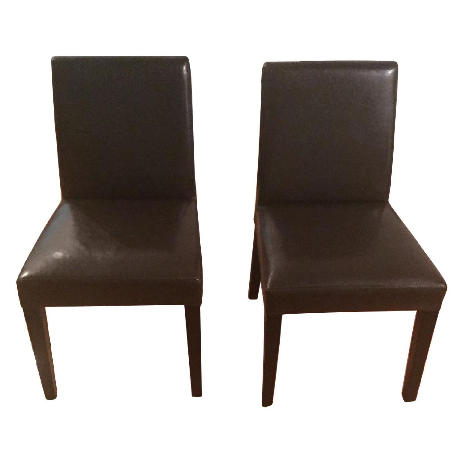 Crate & Barrel Lowe Chocolate Leather Dining Chairs - Pair