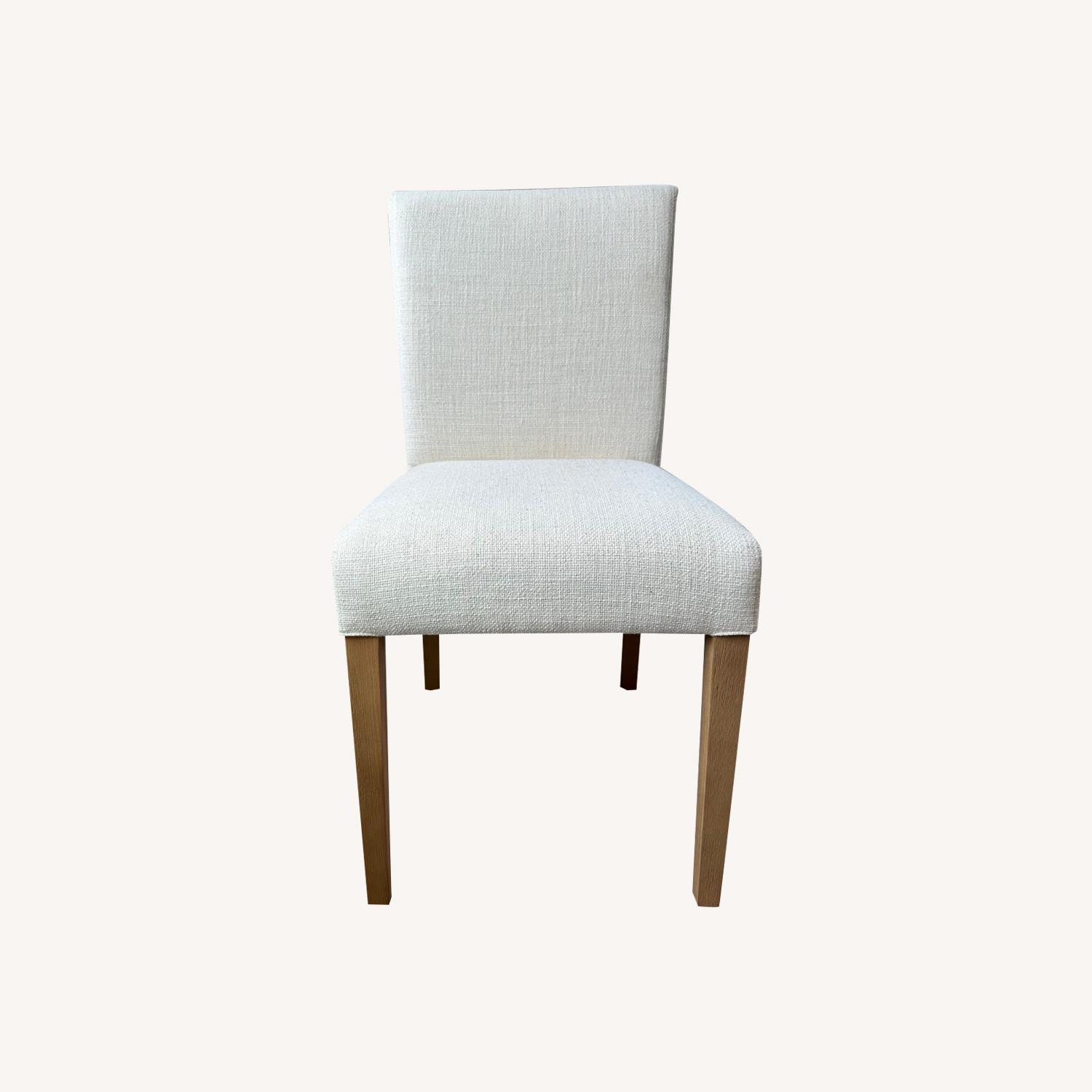 Seller's Notes:This is a set of 4 dining chairs from Crate and Barrel's Lowe set. Ivory-colored upholstery with natural toned wooden legs. The set is less than 2 years old. There is some pilling of the linen-blend fabric from natural wear but otherwise the chairs are in good condition.