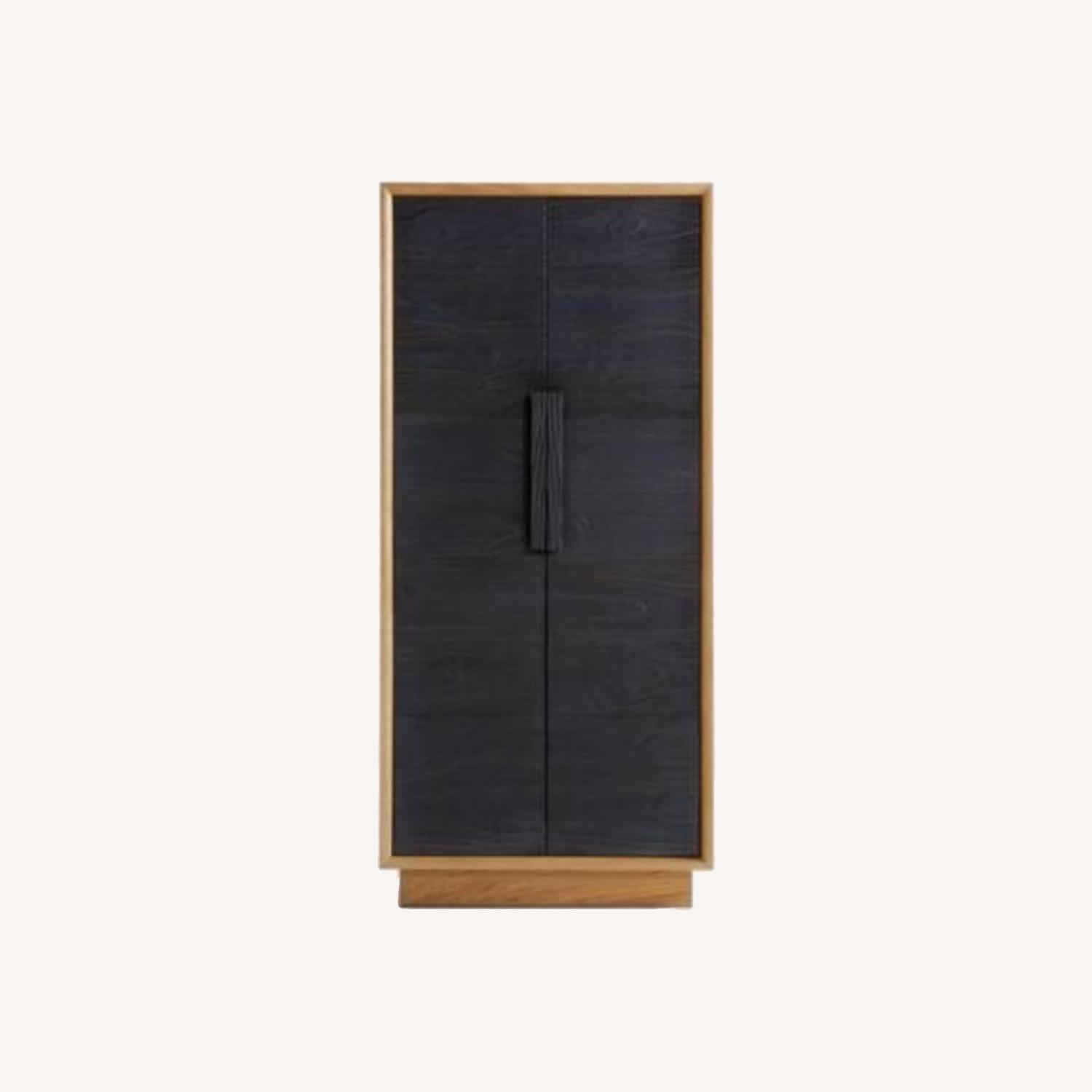 Seller's Notes:This is a beautiful piece of furniture . No longer available in crate and barrel … have had since September 2023 only. Can stand on its own I use it for storage / kitchen pantry and not as a bookcase Description Mixing finishes, textures and colors, our Madera closed bookcase crafts a modern classic. Rustic yet refined, the bookcase contrasts the visible grain, wire-brushed texture and ebonized finish of the cabinet doors with the natural, low-sheen finish, rounded reverse bull-nose edging and recessed plinth base of the oak frame. Inside the closed bookcase, you'll find three adjustable and one fixed shelf to store books, office supplies or crafting goods. The Madera wood closed bookcase with charcoal doors is a Crate & Barrel exclusive. Solid oak, oak veneer and engineered wood frame with light wire brushing and low-sheen natural finish Solid mango wood and pine veneer with heavy wire brushing and ebonized matte finish 4 shelves: 3 adjustable and 1 fixed Cord-management cutouts Levelers Made in Indonesia More details on dimensions in cm: Overall Dimensions Width: 86.36cm Height: 187.96cm Depth: 45.72cm Third Shelf Area Width: 83.185cm Height: 1.905cm Depth: 39.37cm Fourth Shelf Area Width: 82.55cm Height: 1.905cm Depth: 34.925cm Top Shelf Area Width: 82.55cm Height: 1.905cm Depth: 34.925cm Second Shelf Area Width: 82.55cm Height: 1.905cm Depth: 34.925cm Top Shelf Clearance Height: 33.02cm