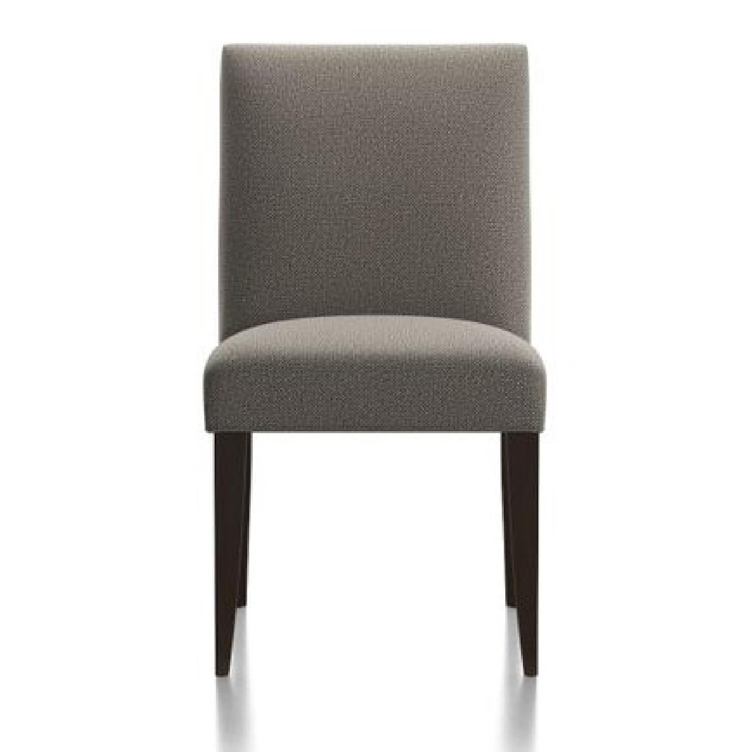 Seller's Notes:The polished proportions and casual formality of our classic Miles upholstered dining chair offer endless dining comfort. The gently flared tight seat and back are upholstered in an easy-care weave, complemented by slim, warm grey hardwood legs that taper gracefully to the floor. The Miles Side Chair is a Crate and Barrel exclusive. Details Certified-sustainable solid hardwood frame Soy-based polyfiber tight seat and tight back Solid hardwood legs with a warm grey finish Plastic glides *** NEVER USED WE BOUGHT THEM AND THEN CHANGE OUR MIND BUT COULDN'T RETURN