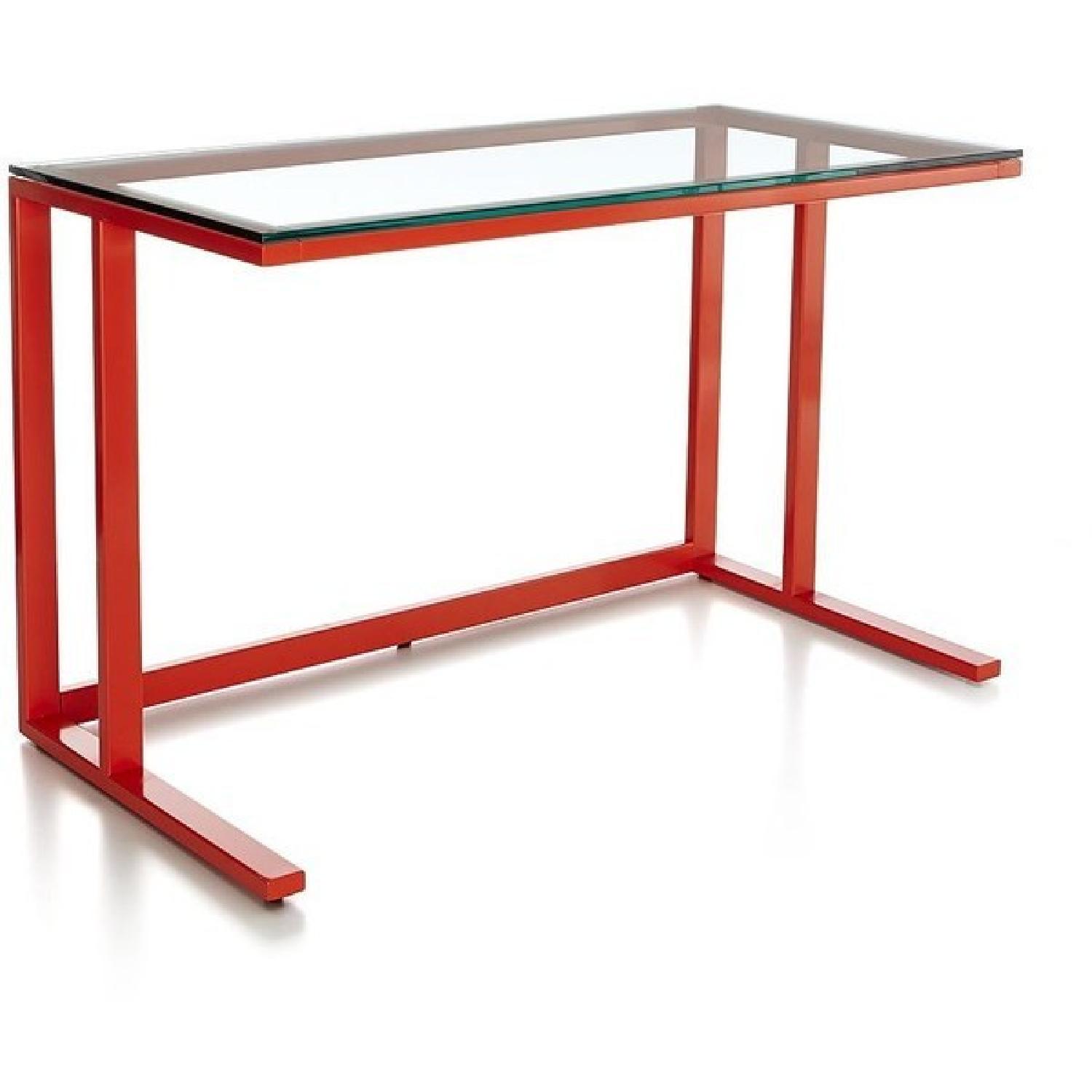 Seller's Notes:- Selling this beautiful paprika colored Pilsen model desk and matching Milton 2 drawer filing cabinet (separate lisitng) from Crate & Barrel - The paprika color is no longer available at Crate & Barrel's website - We recently moved and don't have a good place for this desk, which is why we are selling it - The desk is than two years old and in very good condition (barely used) - the glass top and paprika base have a few minor scratches but cannot be seen in photos - The Manufacturer / Retailer link in this listing is showing the same desk with a different color (same original price) https://www.crateandbarrel.com/pilsen-graphite-desk/s575286