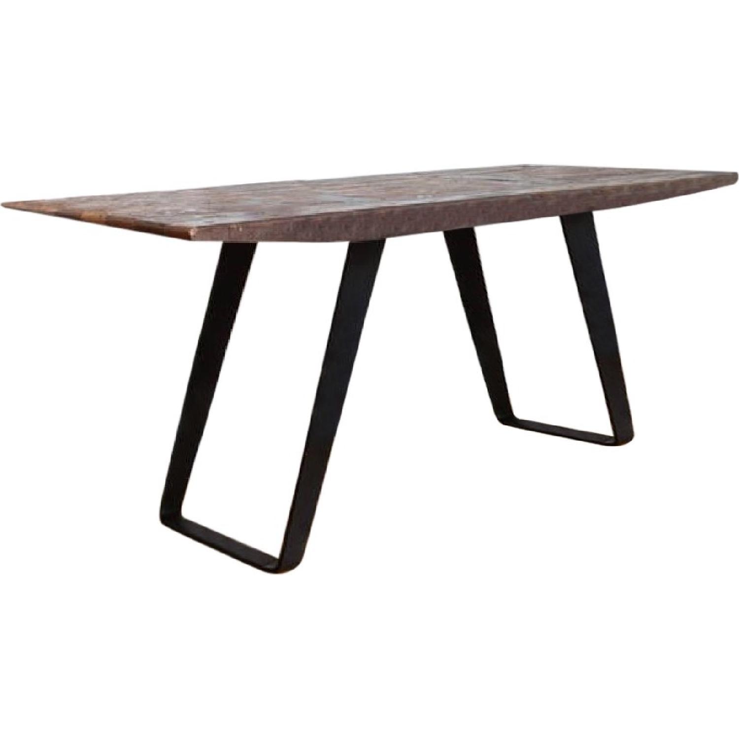 Seller's Notes:Handcrafted from reclaimed Brazilian telephone poles, this unique table's incredible character stems from true distressing by time and nature. Finished with a wing-like beveled edge in a nod to the name, Phoenix's rustic top rises from a distinctive black steel base that's angled just so. Phoenix is crafted by hand in a small factory in Puebla, Mexico known for its metal and reclaimed wood expertise. Each tabletop board is selected and placed to form a single top with scattered post holes. Steel legs are welded, polished and sealed, yielding an industrial yet sophisticated finish. Two perpendicular iron plates carry the line of the legs through the tabletop. A versatile work-surface size, Phoenix doubles as a small dining table for four. The Phoenix Work Table is a Crate and Barrel exclusive. Reclaimed wood top with beeswax topcoat Each desk is unique due to color variation, knots and wood grain. Made in Mexico As with all solid woods, expansion and contraction may occur with seasonal changes in humidity Steel base with black finish and lacquer Black iron plates Made in Mexico