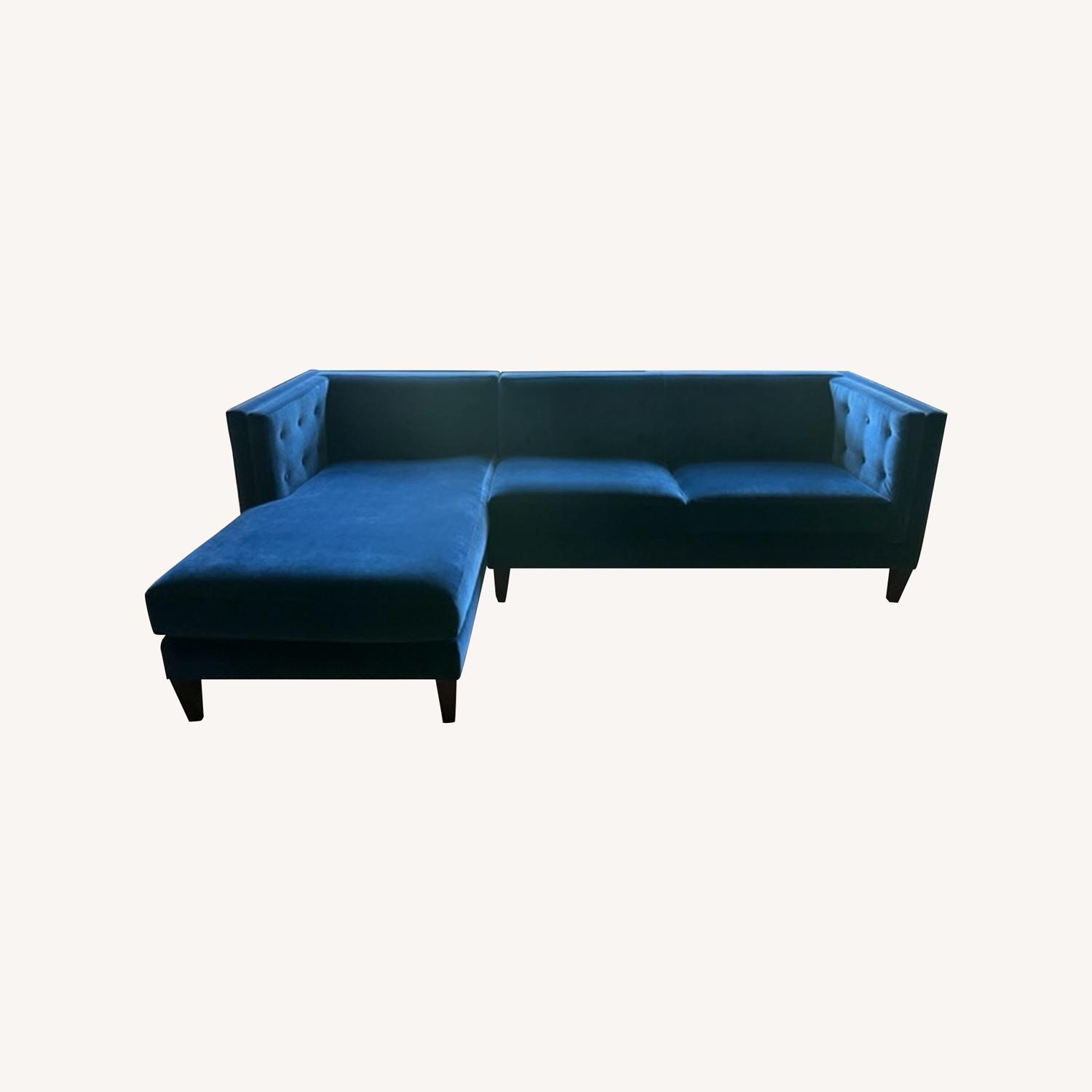 Seller's Notes:This sofa is the Aidan Right Arm Loveseat and Aidan Left Arm Chaise in Como Indigo Performance Velvet upholstery. Legs: Walnut finish. 99" long by 34" deep (chaise 65" deep) 30" high (seat height 19") We love this sofa! The only reason we're replacing it is that it turned out to be an awkward shape for our particular room. It's in great condition, very comfortable for sitting and lounging, and stunning. Our guests always commented on how much they loved it. The year we bought this sofa, it was rated "most comfortable Crate & Barrel sofa" by Apartment Therapy: https://www.apartmenttherapy.com/reviewed-the-most-comfortable-sofas-at-crate-amp-barrel-241095