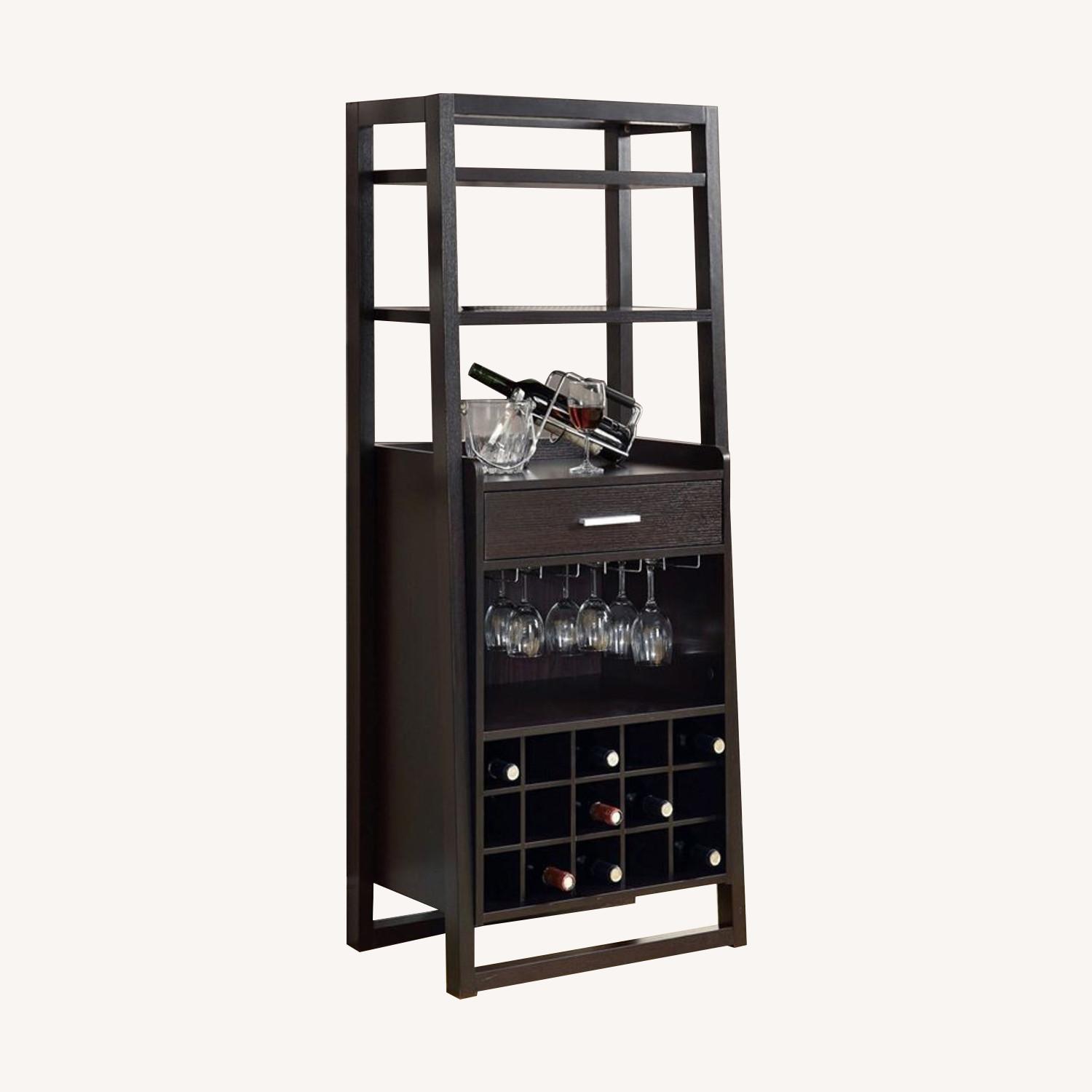 Seller's Notes:Incredibly functional with space for wine glasses, bottles, and a drawer to hide away other items. 3 tiered shelves.