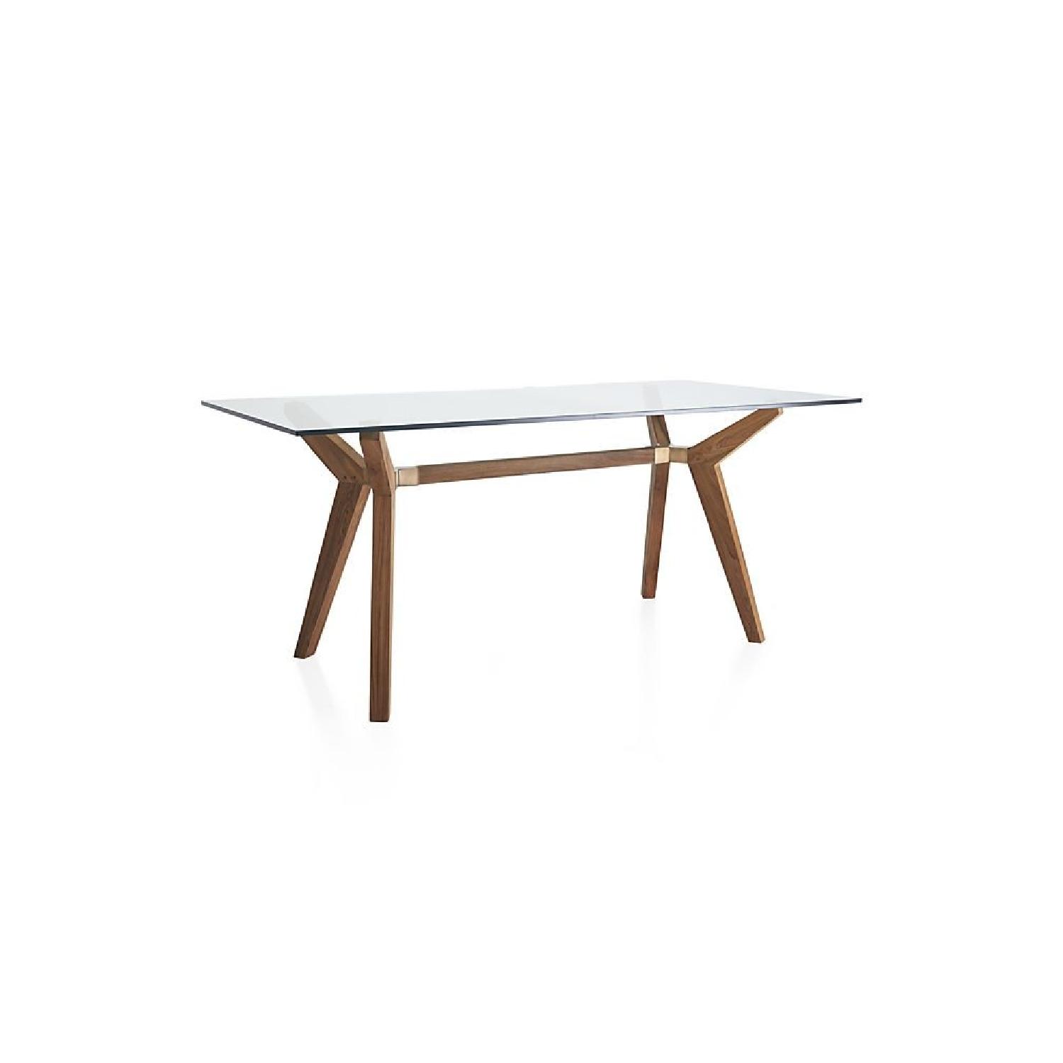 Crate & Barrel Strut Teak Glass Top Table