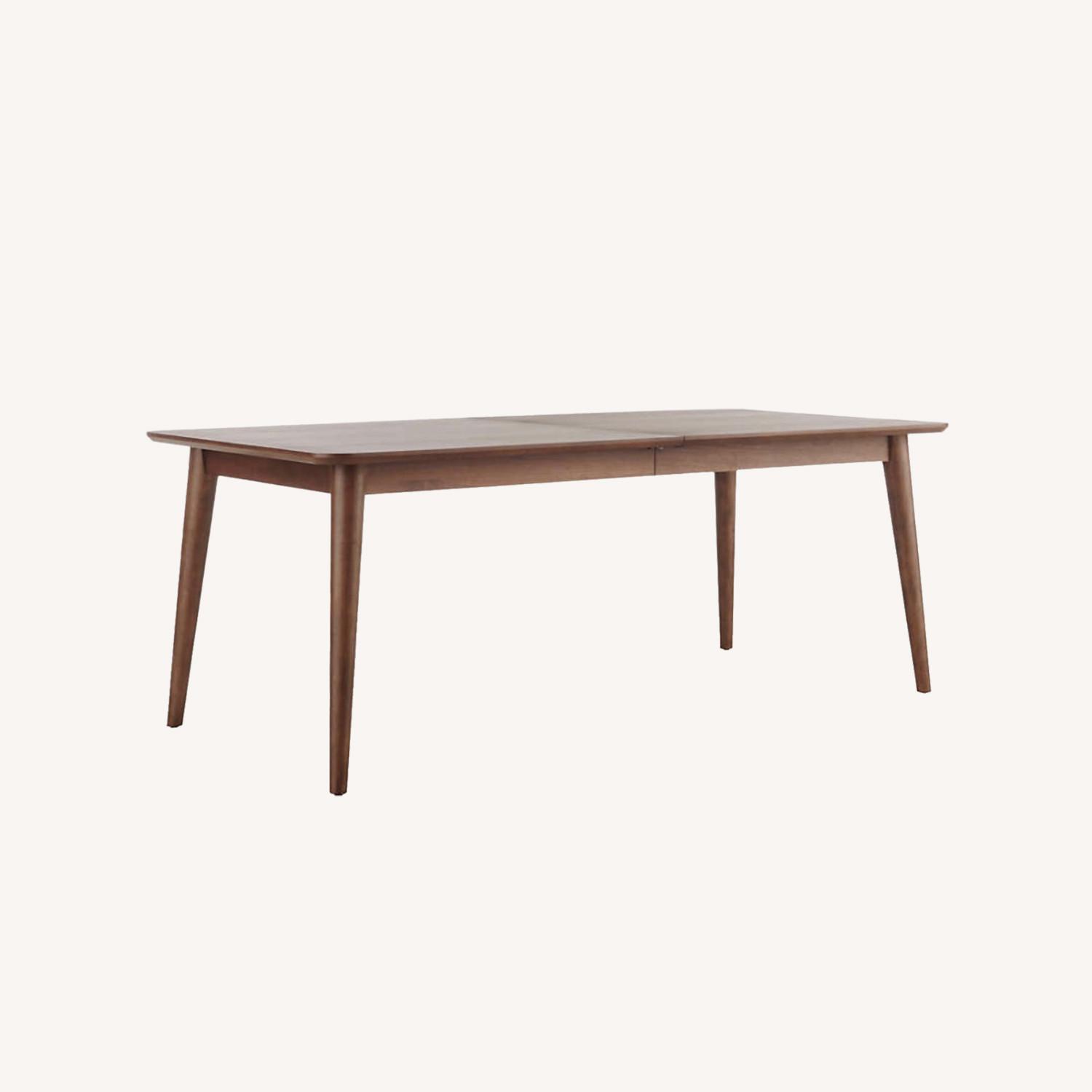 Seller's Notes:MCM Crate & Barrel Tate Table Tate 78"-114" Walnut Extendable Midcentury Dining Table 78"Wx38"Dx29.5"H 1 year old. No damage.