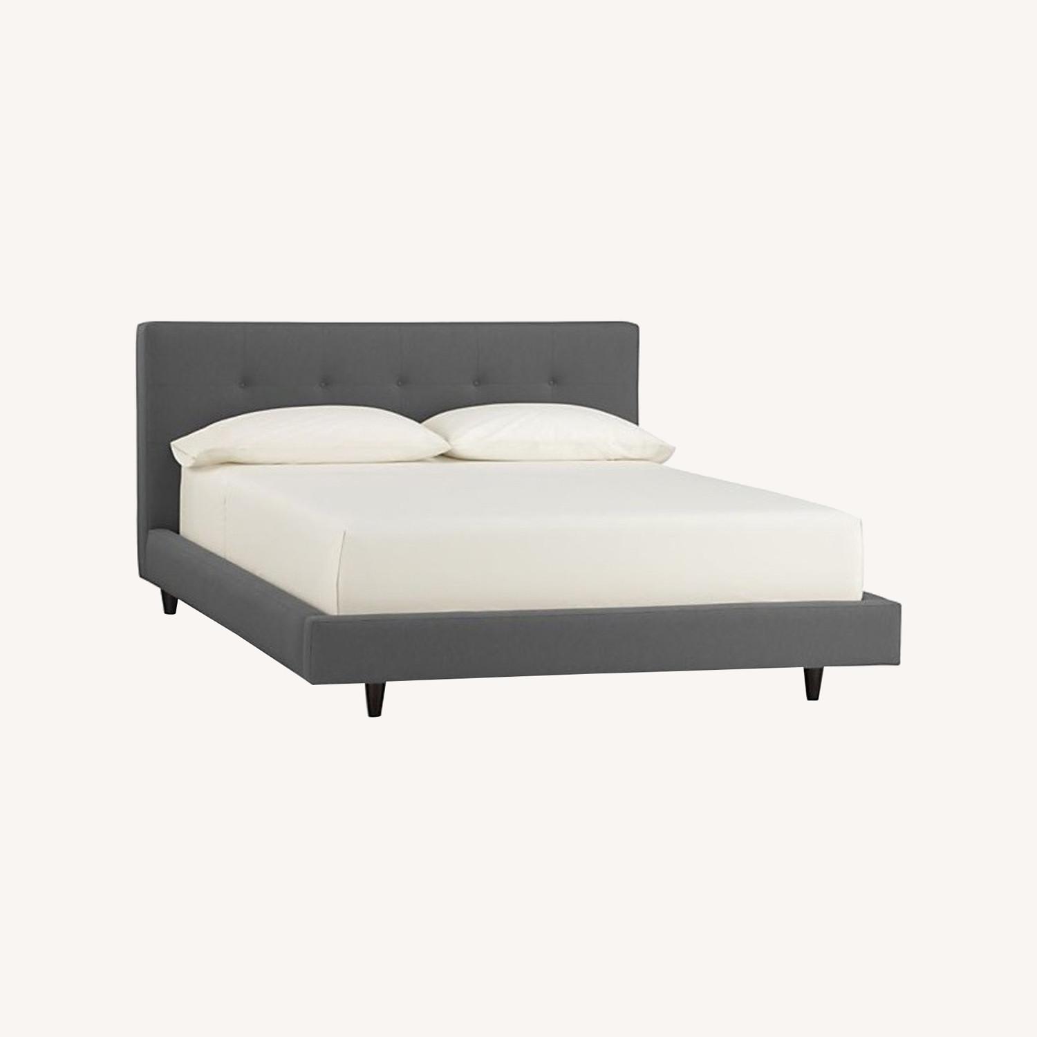 Seller's Notes:Gorgeous queen sized bed in excellent condition. We love it but have decided to change our bedroom design. Priced to sell quickly! 1960s-inspired Tate collection recalls the timelessness of mid-century design with tailored profiles and streamlined shapes. The bed's textural fabric is punctuated with retro button-tufting on the headboard, which is fully upholstered front and back to give you more flexibility in positioning the bed. Streamlined, low platform design takes a minimal stance with dark brown tapered legs. Retail price is $1599.
