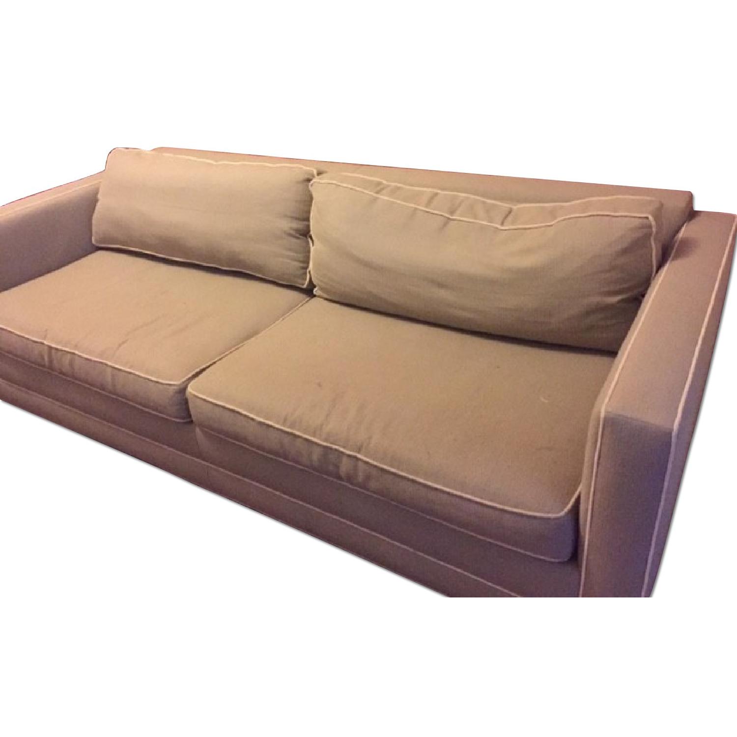 Seller's Notes:Owner purchased from crate and barrel in 2010, selling due to relocation. Queen sleeper sofa, very comfortable. Has discoloration on fabric, which may be removable with fabric/apholestry cleaner. Original crate and barrel listing description: A simple, straightforward silhouette in a warm putty color takes on a more modern edge with ivory contrast-welt detailing that traces every line. High track arms frame comfortable cushioning: two back cushions over two seat cushions on the compact apartment sofa. Chunky block feet have a dark ebony finish called deco. After you place your order, we will send a fabric swatch via next day air for your final approval. We will contact you to verify both your receipt and approval of the fabric swatch before finalizing your order. Eco-Friendly Construction Certified sustainable, kiln-dried hardwood frame Seat cushions are soy-based polyfoam wrapped in fiber and encased in downproof ticking More Features Back cushions are fiber in downproof ticking Sinuous wire spring suspension Upholstery fabric is cotton-polyester blend with contrast welt detail Benchmade in the USA