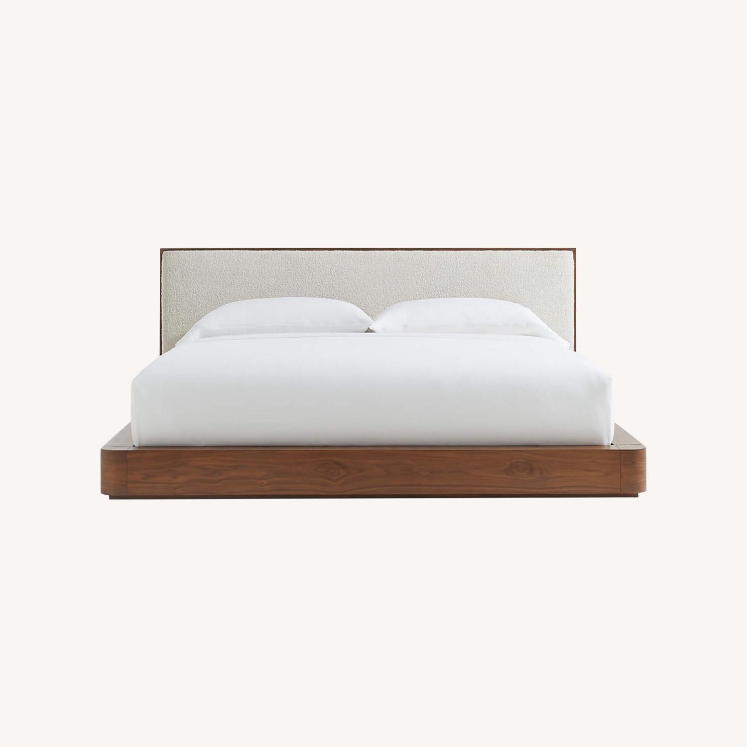 Crate & Barrel Walnut Wood Upholstered King Bed