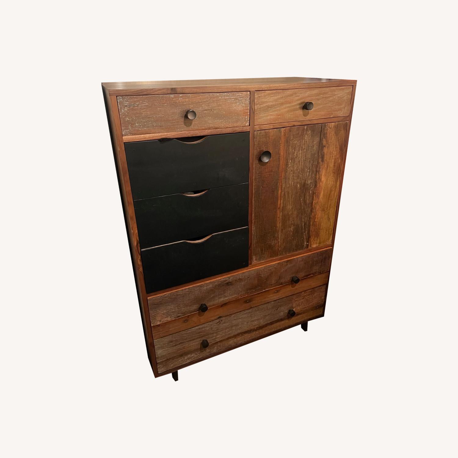 Seller's Notes:Very nice, tall dresser from the Crate & Barrel Atwood collection. I've had this for 10 years and has minimal wear & tear, in extremely good almost like new condition. Has all hardware, no visible scratches. Made of reclaimed wood from Brazil, with iron bar legs and industrial design. It is very sturdy, no wobble at all, and all drawers are in tact and function smoothly. There is also one cabinet (middle to the right) that has two shelves embedded for additional storage options. Retail price was $2,500 and is no longer available for purchase so this is a significant discount. Here is the original product link with more photos and description: https://www.crateandbarrel.com/atwood-tall-chest/f44299 Dimensions: 40.25"W x 20.5"D x 56"H Note this piece is heavy. Drawers are removable to assist with moving, but would suggest multiple people to help you with this piece (wrapping, moving, etc.), or sending a professional service to pick it up. I live in an elevator building with big doors for easy moving.