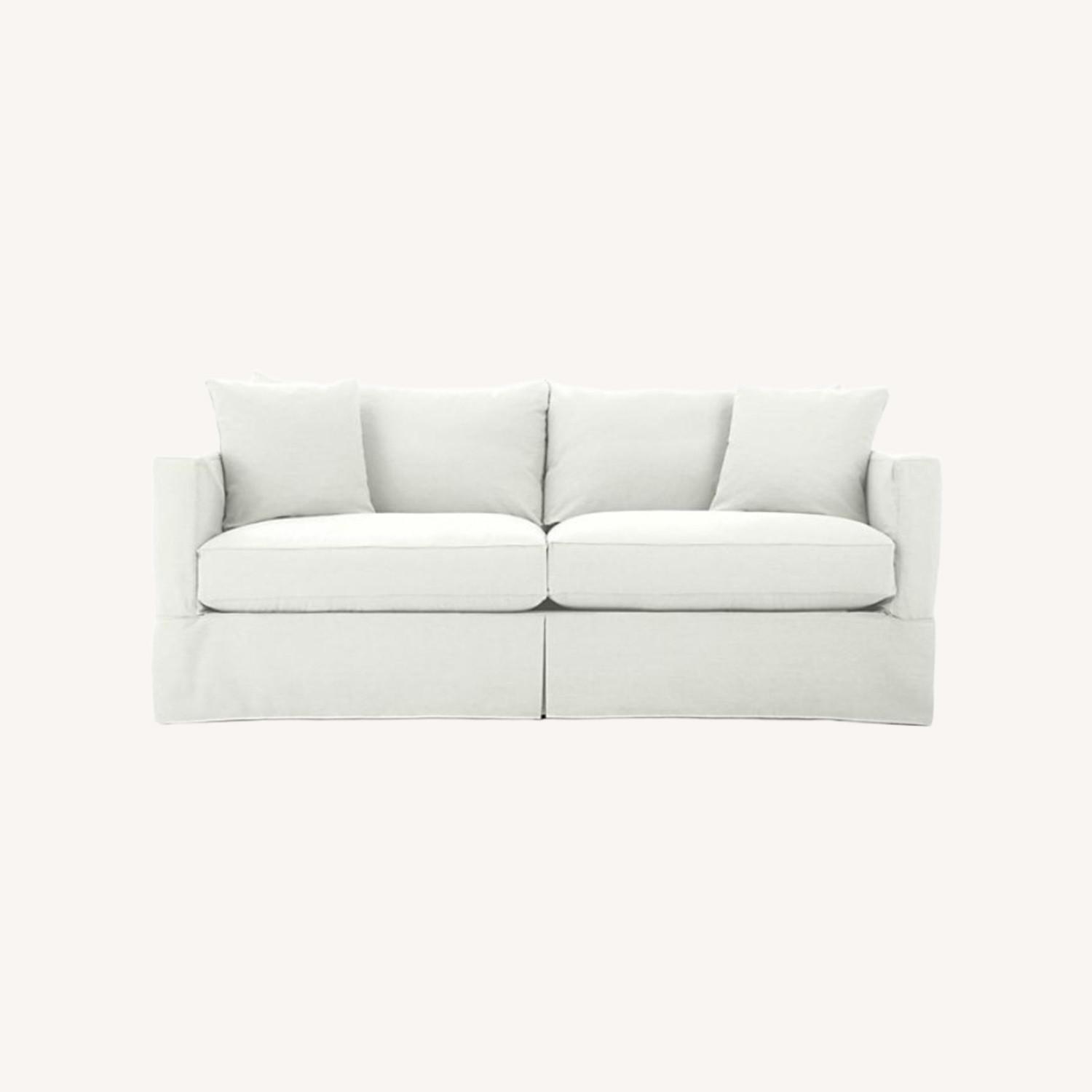 This sofa's slim track arms are just the right sheltering height to invite curling up in a corner and sinking into plump seat and back cushions. The sofa's slipcover is fitted with inverted kick pleats, welting and topstitching to keep it neatly in place, while a quick spin in the washing machine keeps it looking fresh. Willow Sofa is a Crate and Barrel exclusive.