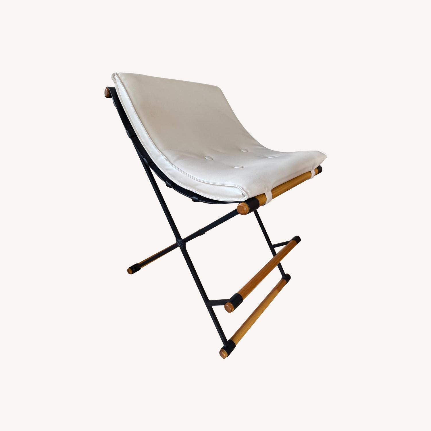Seller's Notes:I’m selling a set of 3 cream Cleo Baldon replica bar stools. The seats are covered in eco-leather and have a clean, modern look that works great in pretty much any space. Two of them are in great shape, but one has a small tear on the upper back that could use a little repair (nothing too major). Dimensions Width: 19" Depth: 22" Floor to seat: 22" Floor to top of back: 29" Very similar to these: https://www.newel.com/product/pair-of-cleo-baldon-for-terra-of-california-mid-century-american-x-frame-beige-barstools- and https://www.thespacedetroit.com/shop-the-space-detroit-mid-century-modern-vintage-furniture-collection-michigan-modern-chair-cabinet-lighting/cleo-baldon-stools